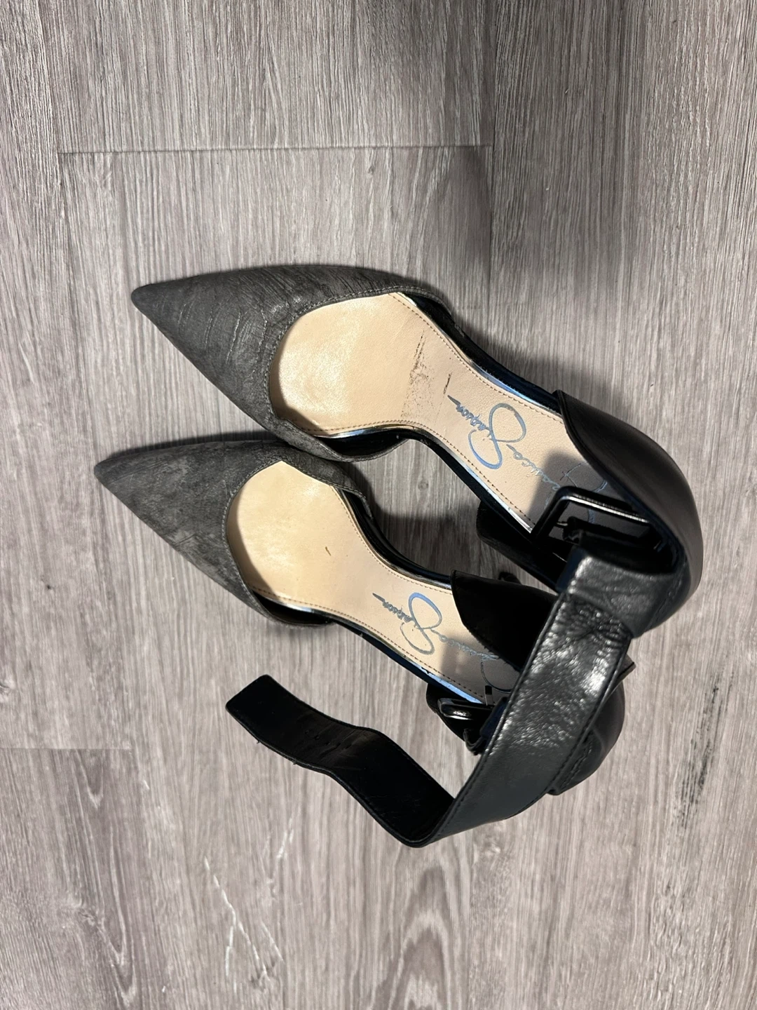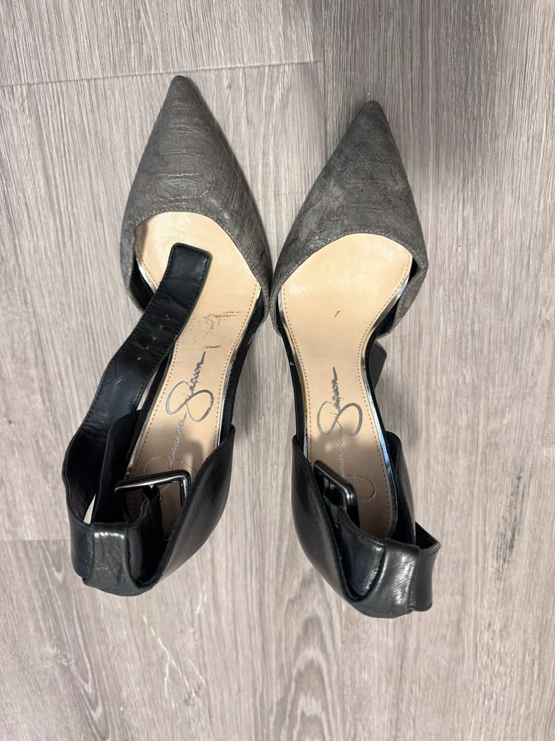Jessica Simpson Grey Faux Snakeskin Ankle Strap Heels