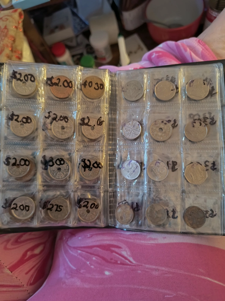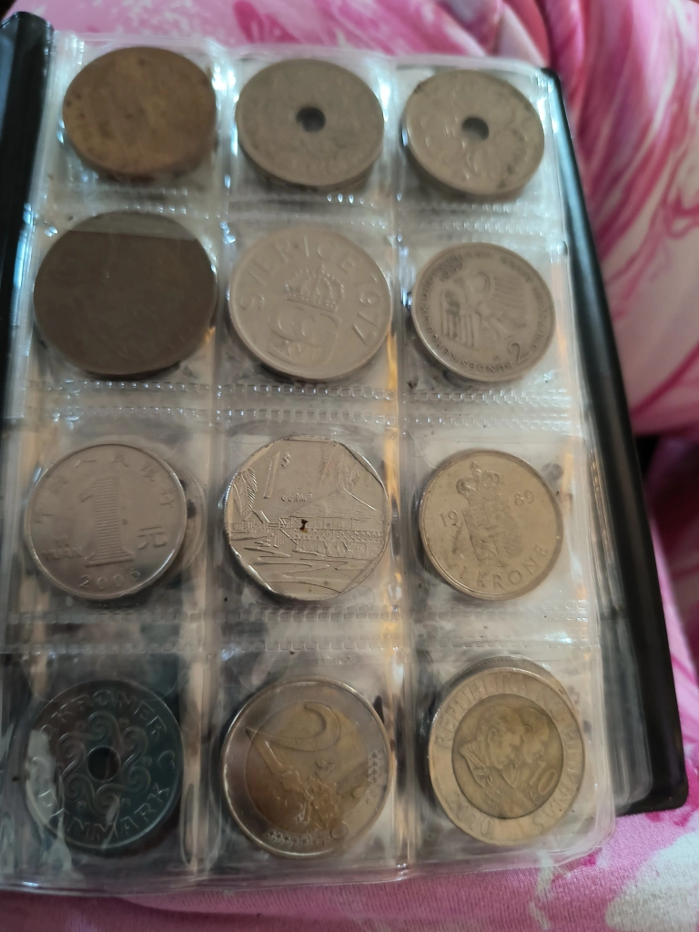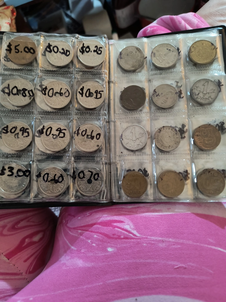I am selling a coin collection. The coins are in protective sleeves. They are placed in a binder. It will be relaxing to sort through these coins.