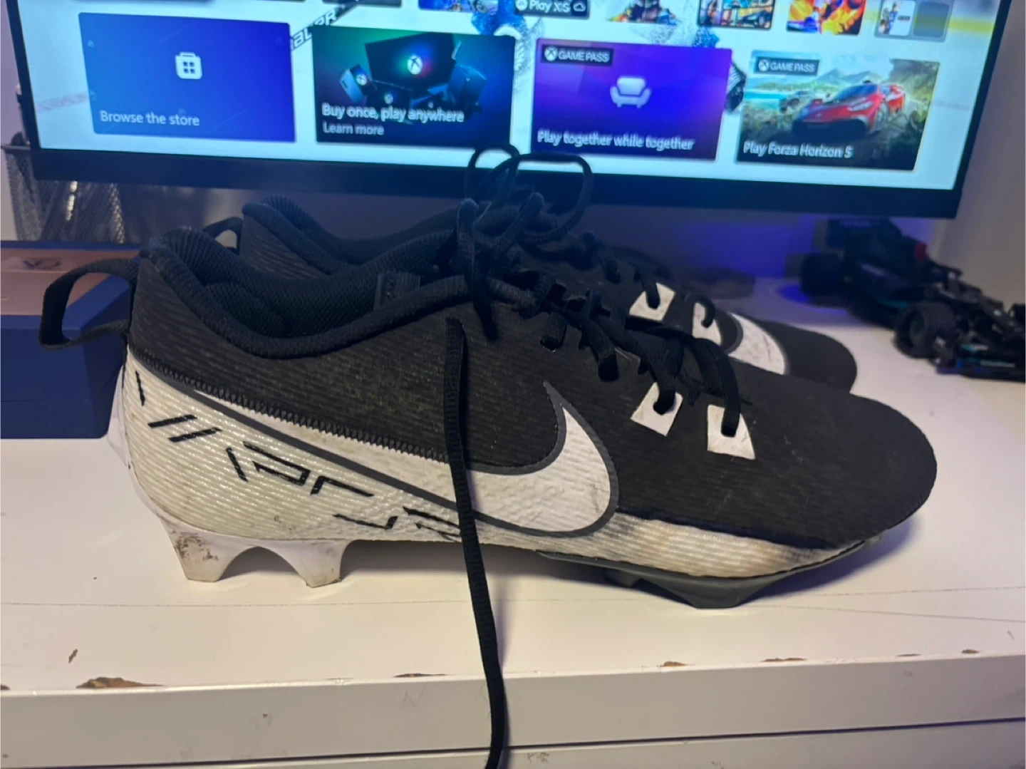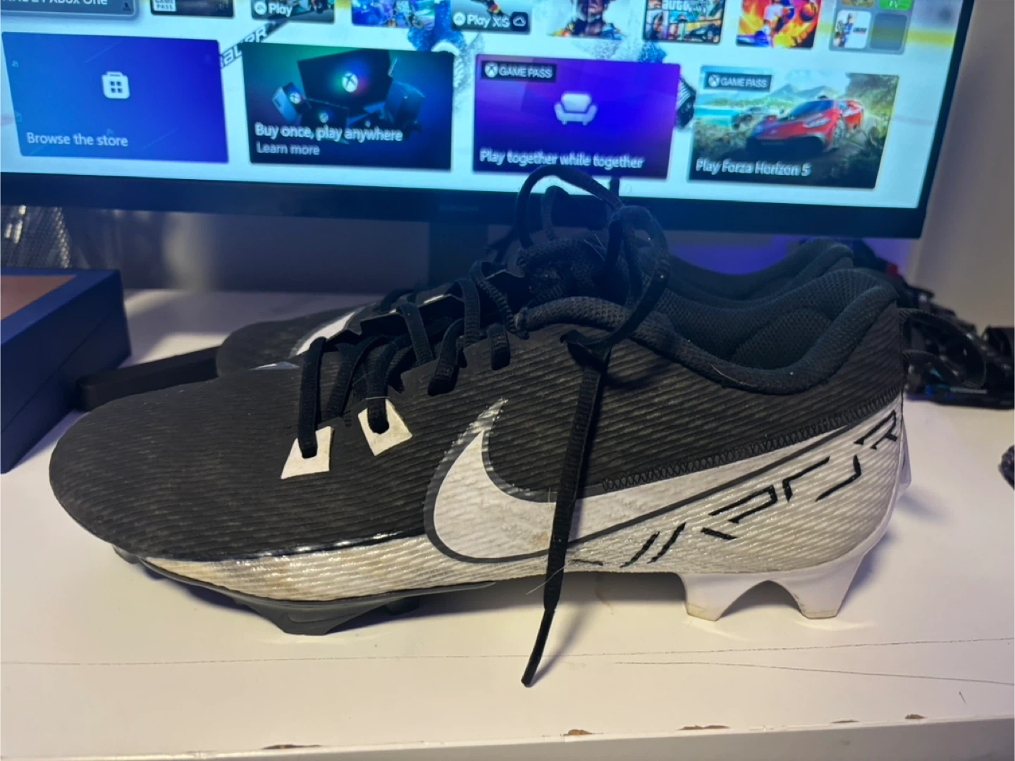 Buy & SellNike Football CleatsNike Football Cleats$14Black Nike football cleats. US Size 11. These are designed for playing football on a turf or grass field. They've got good traction!WHERE TO MEETCheck LocationView MapSELLERLeviMills Haven100 reviews0 chats·0 favorites·8 viewsSEND CHAT TO SELLERHi Levi! I’m interested in your listing.Hi Levi! I’m interested in your listing.Get the Karrot app to chatSign In to chat