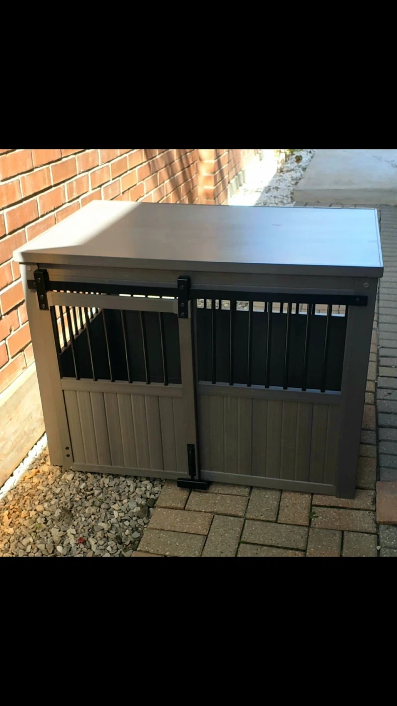 Selling an ECOFLEX dog crate that also doubles as an end table! It's a stylish and functional piece for your home and your furry friend. The crate is made of ECOFLEX, a non-toxic recycled plastic-wood polymer composite that won't warp, crack or split. It's in great condition and ready for a new home!