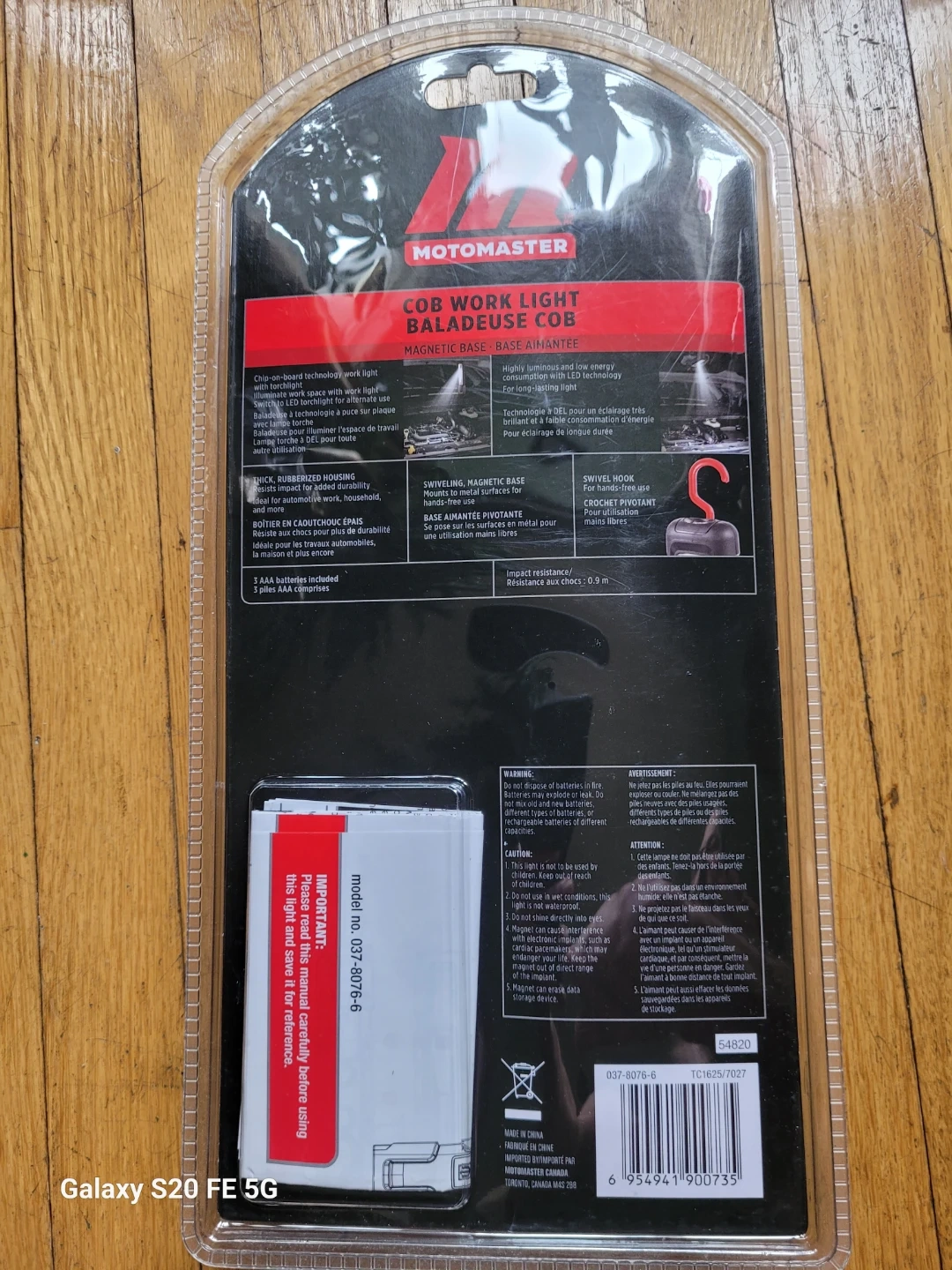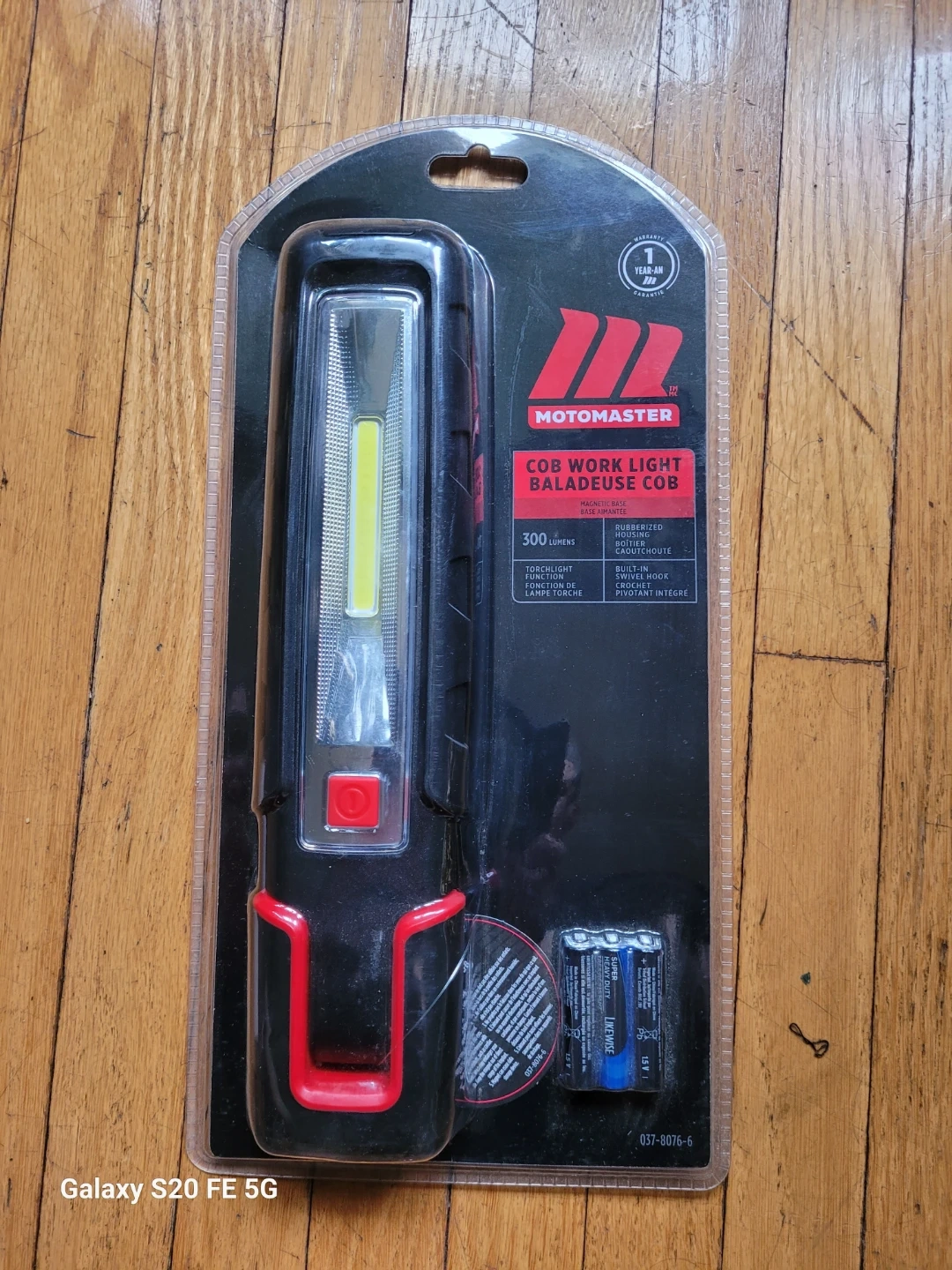 This Motomaster COB work light is great for any workshop or garage. It's magnetic for easy mounting and comes with 3 AAA batteries included. It also features a built-in hook for hanging.