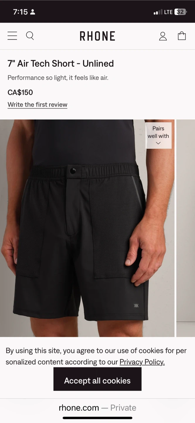 Rhone 7" Air Tech Shorts in size large. These shorts are performance-focused and feel lightweight, almost like air! Similar shorts shorts from Rhone will cost you $150