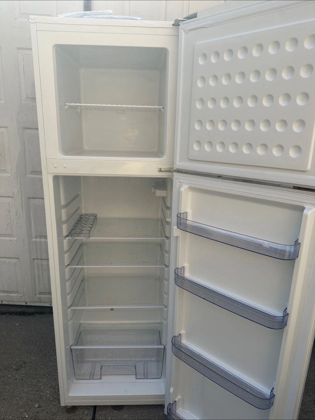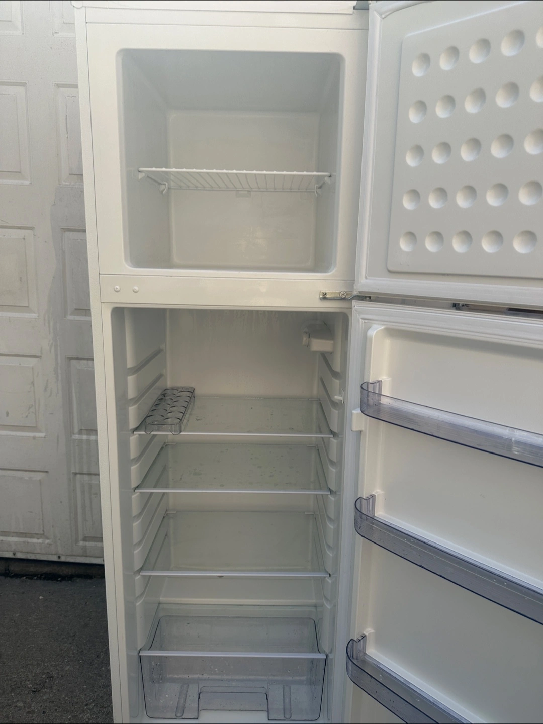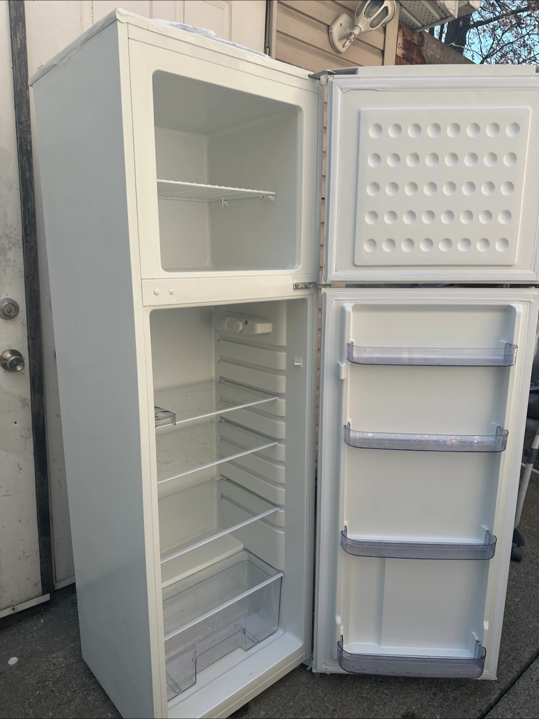 White Frigidaire refrigerator. Two doors. Multiple shelves and crisper drawers. Very Good condition. Move out Sale.