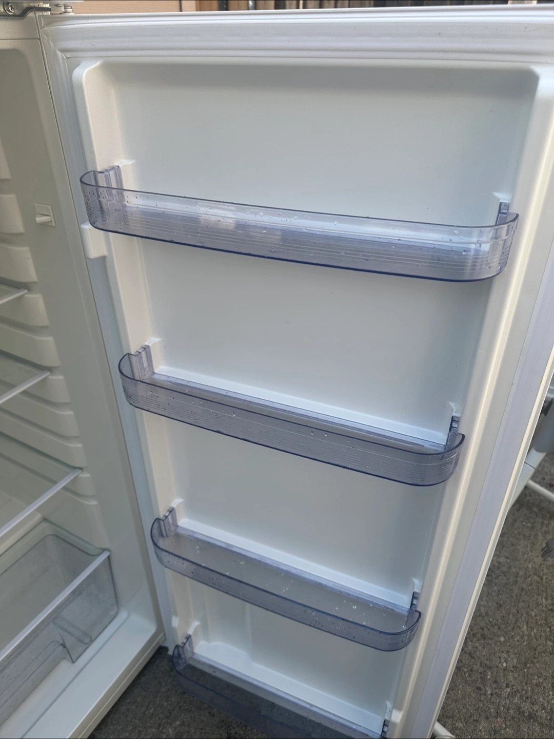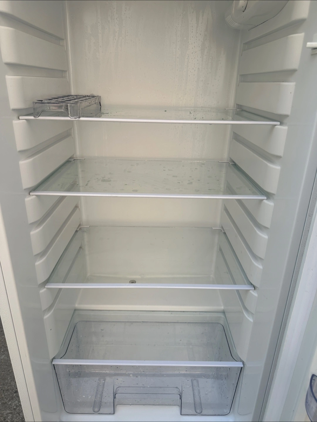White Frigidaire refrigerator. Two doors. Multiple shelves and crisper drawers. Very Good condition. Move out Sale.
