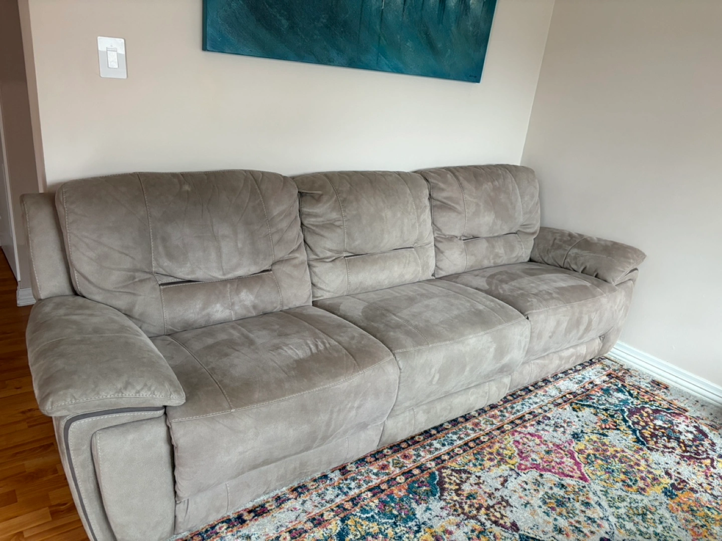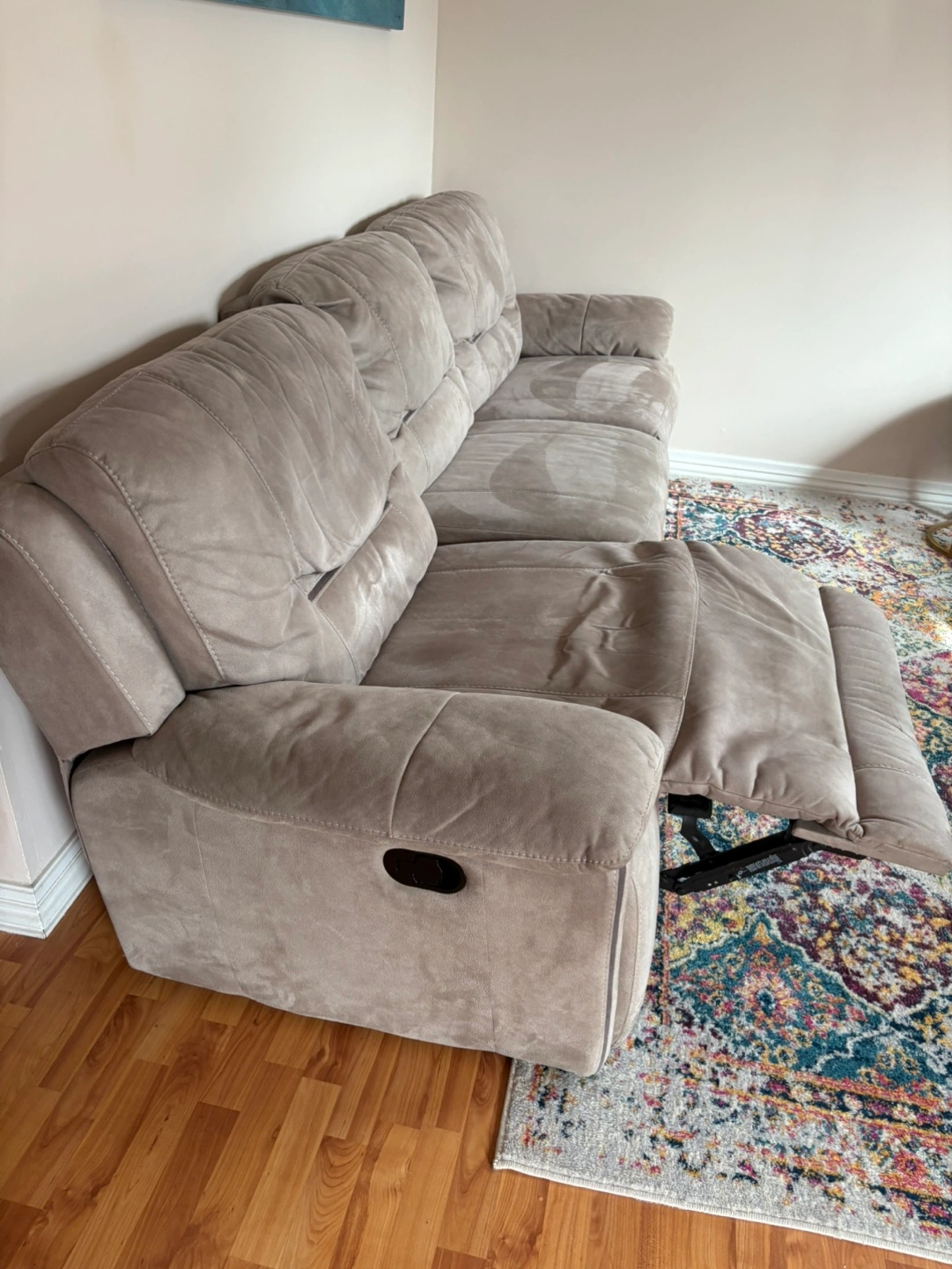 This is originally a 4-seater sofa, but I’ve been using it as a 3-seater due to space limitations in my new home. Both ends of the sofa feature recliners, offering great comfort for relaxing.