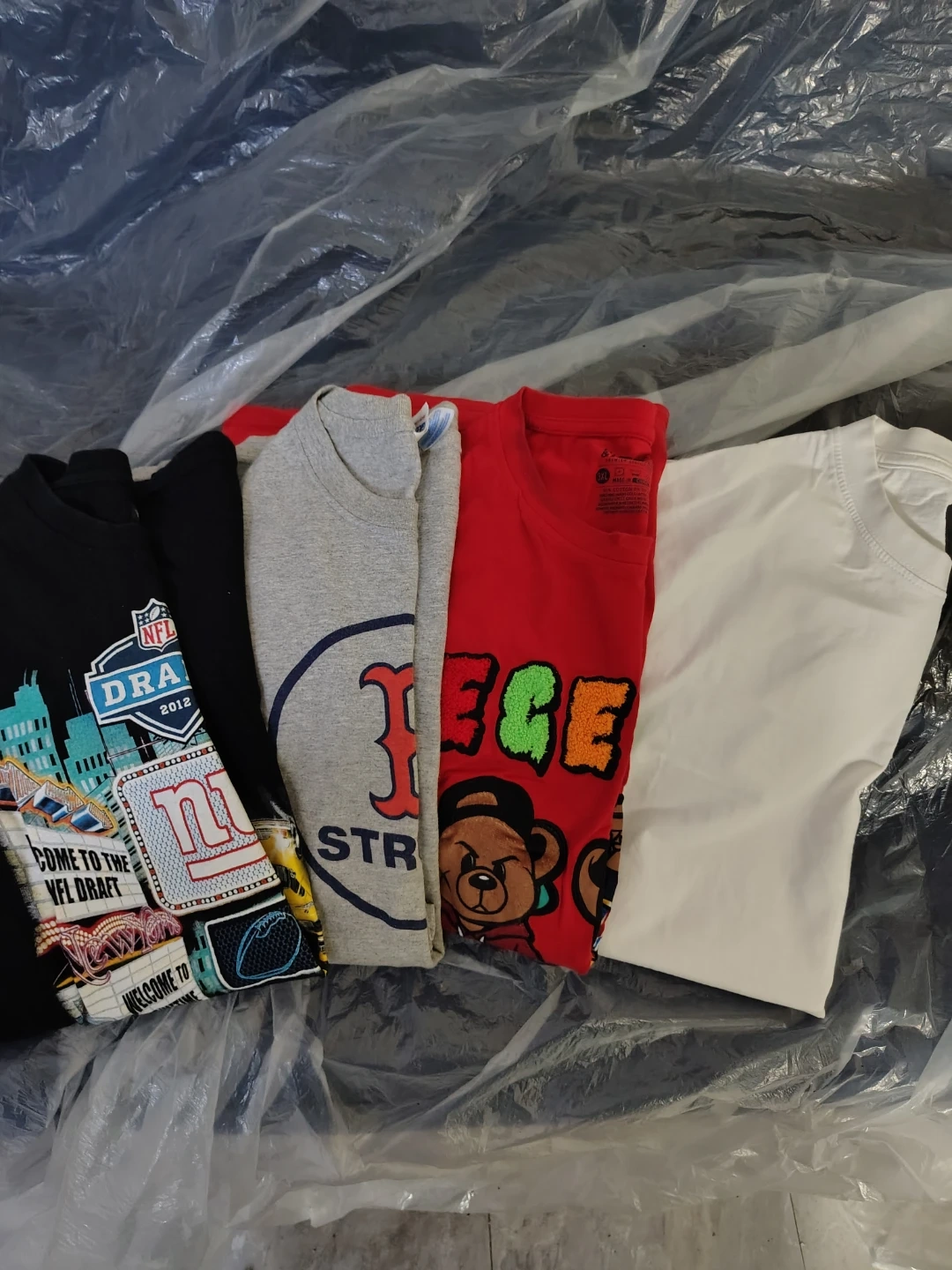 This bundle includes several t-shirts from Bleecker & Mercer, in sizes 2XL and 3XL. The red t-shirt is 95% Cotton and 5% Spandex. The gray t-shirt is 90% Cotton and 10% Polyester. They're comfortable and casual wear.