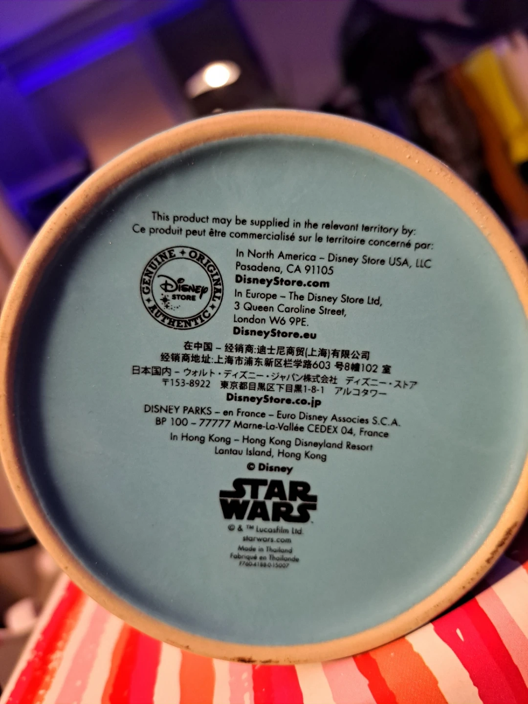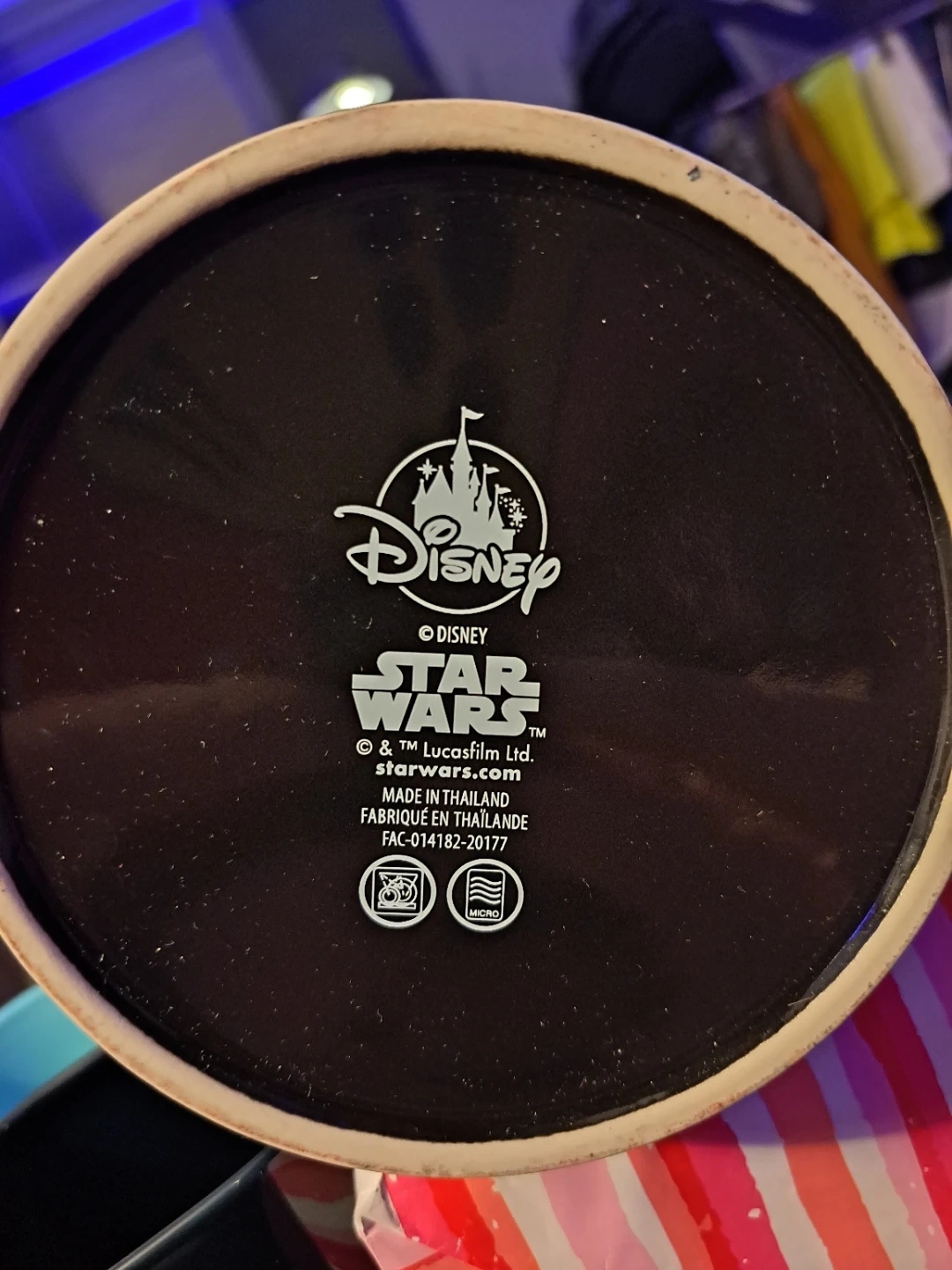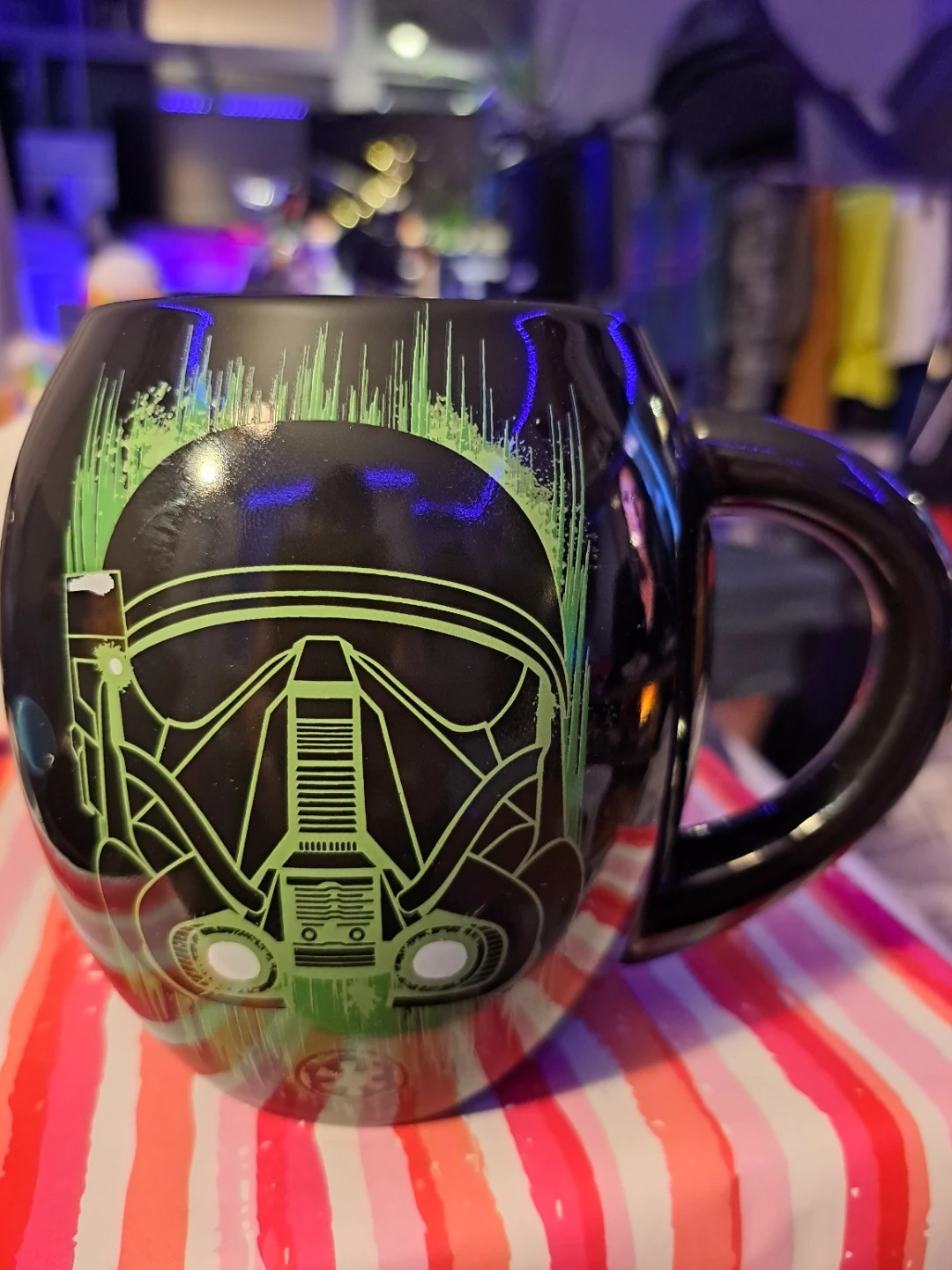 Set of two Star Wars themed mugs. One features Darth Vader and the other features a Rogue One character. Made in Thailand.