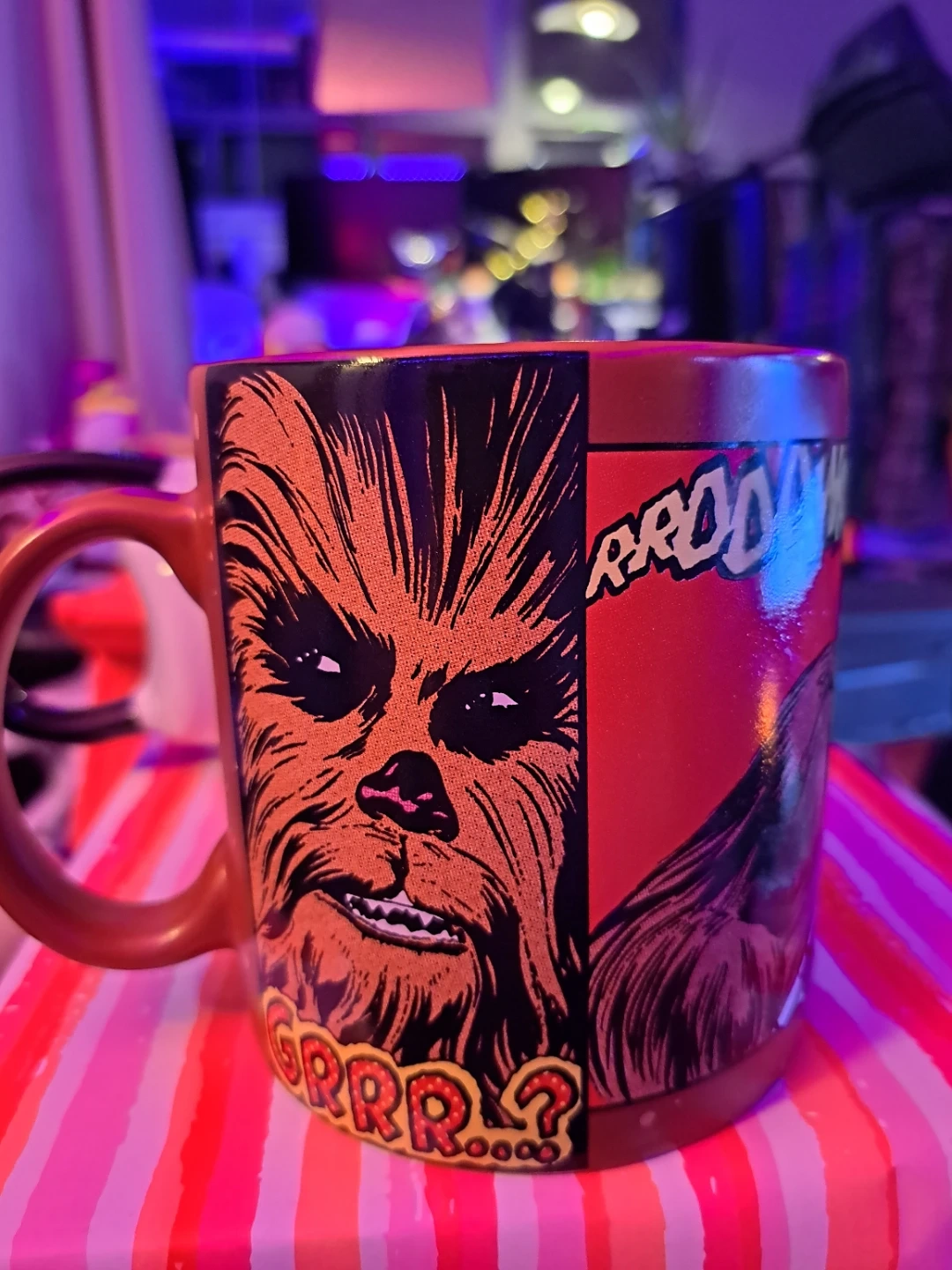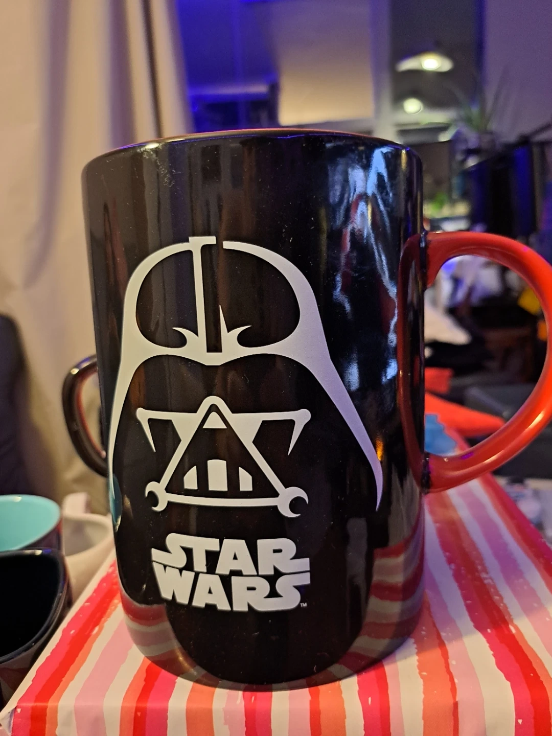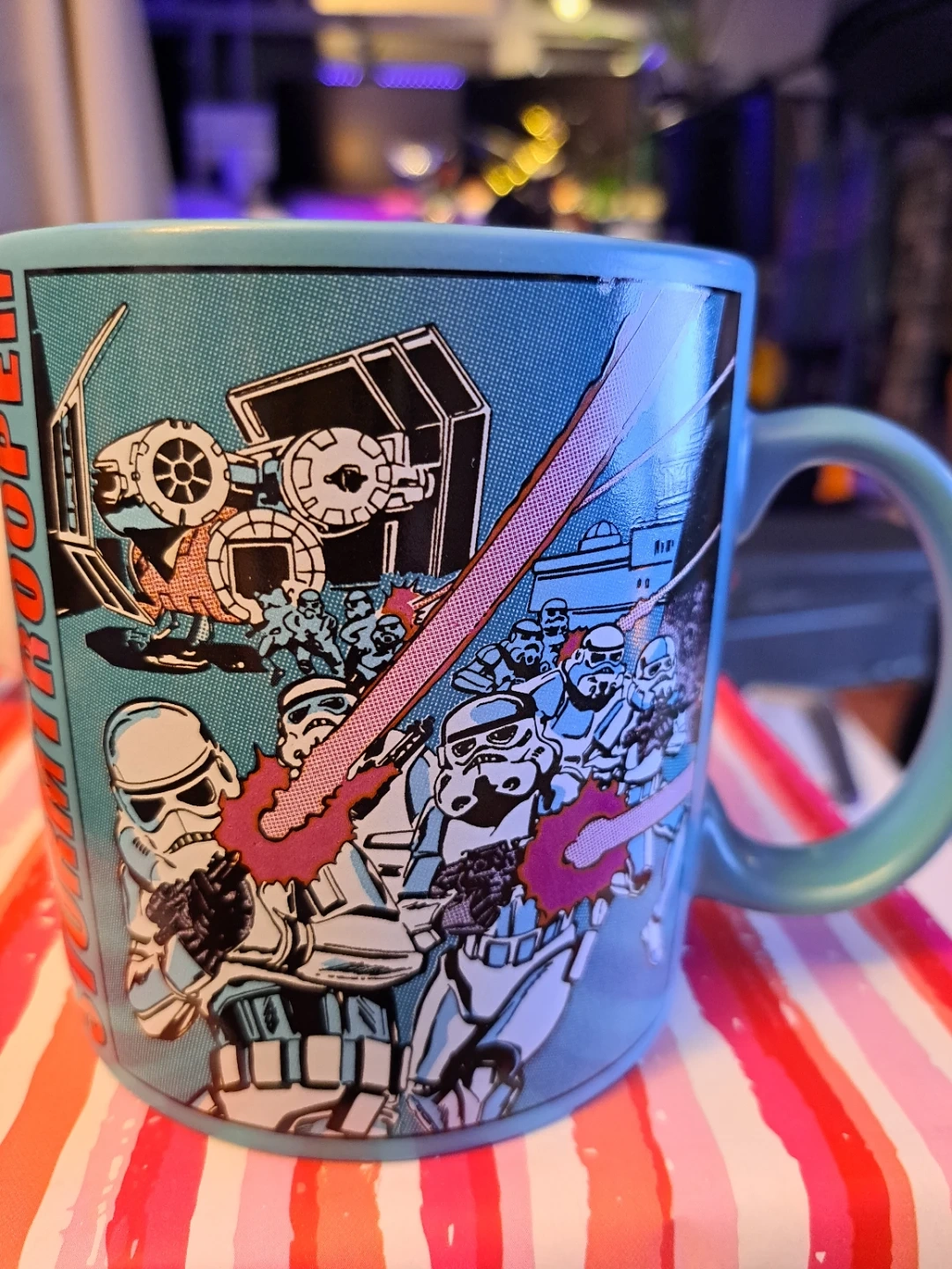 Set of two Star Wars themed mugs. One features Darth Vader and the other features a Rogue One character. Made in Thailand.