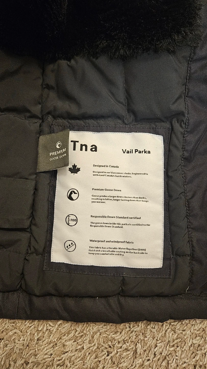 Buy & SellTna Vail Black Winter JacketTna Vail Black Winter Jacket$60This is a Tna Vail winter jacket in black. It's a size XS. Features a faux fur-lined hood and body. Includes ribbed cuffs for extra warmth.ConditionLike newWHERE TO MEETWest SecordView MapSELLERverifiedTuSecord812 reviews0 chats·0 favorites·35 viewsSEND CHAT TO SELLERHi Tu! I’m interested in your listing.Hi Tu! I’m interested in your listing.Get the Karrot app to chatSign In to chat
