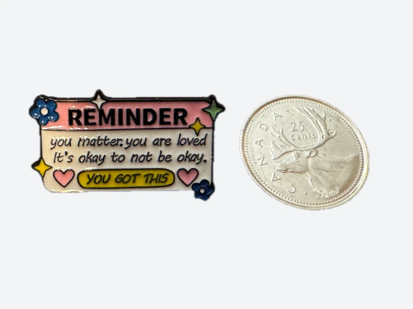A cute enamel pin with a positive reminder.