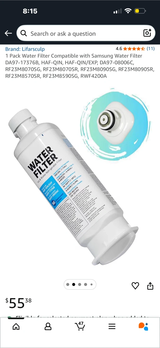 Keep your fridge water clean with this Lifarsculp water filter! Compatible with Samsung refrigerators and designed for a precise fit to prevent leaks. It offers precise filtering with a 0.5µm pore size. Easy to install and operate, no tools required!