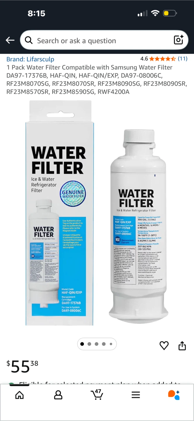 Keep your fridge water clean with this Lifarsculp water filter! Compatible with Samsung refrigerators and designed for a precise fit to prevent leaks. It offers precise filtering with a 0.5µm pore size. Easy to install and operate, no tools required!
