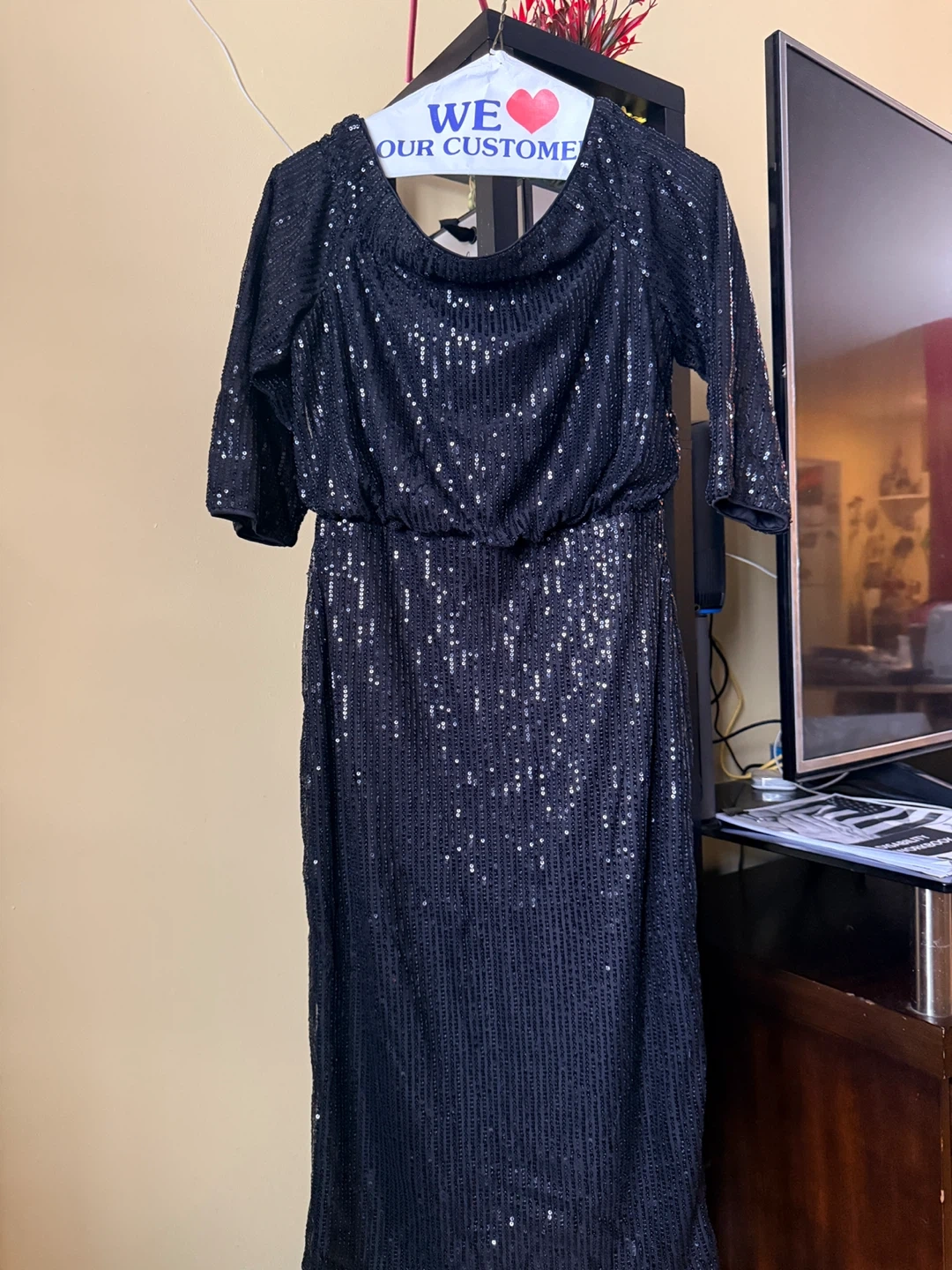 Selling a beautiful black sequin dress from Shein! It's a size M (US 6, EU 38). The dress is made of 95% polyester. Perfect for a night out or a special occasion!