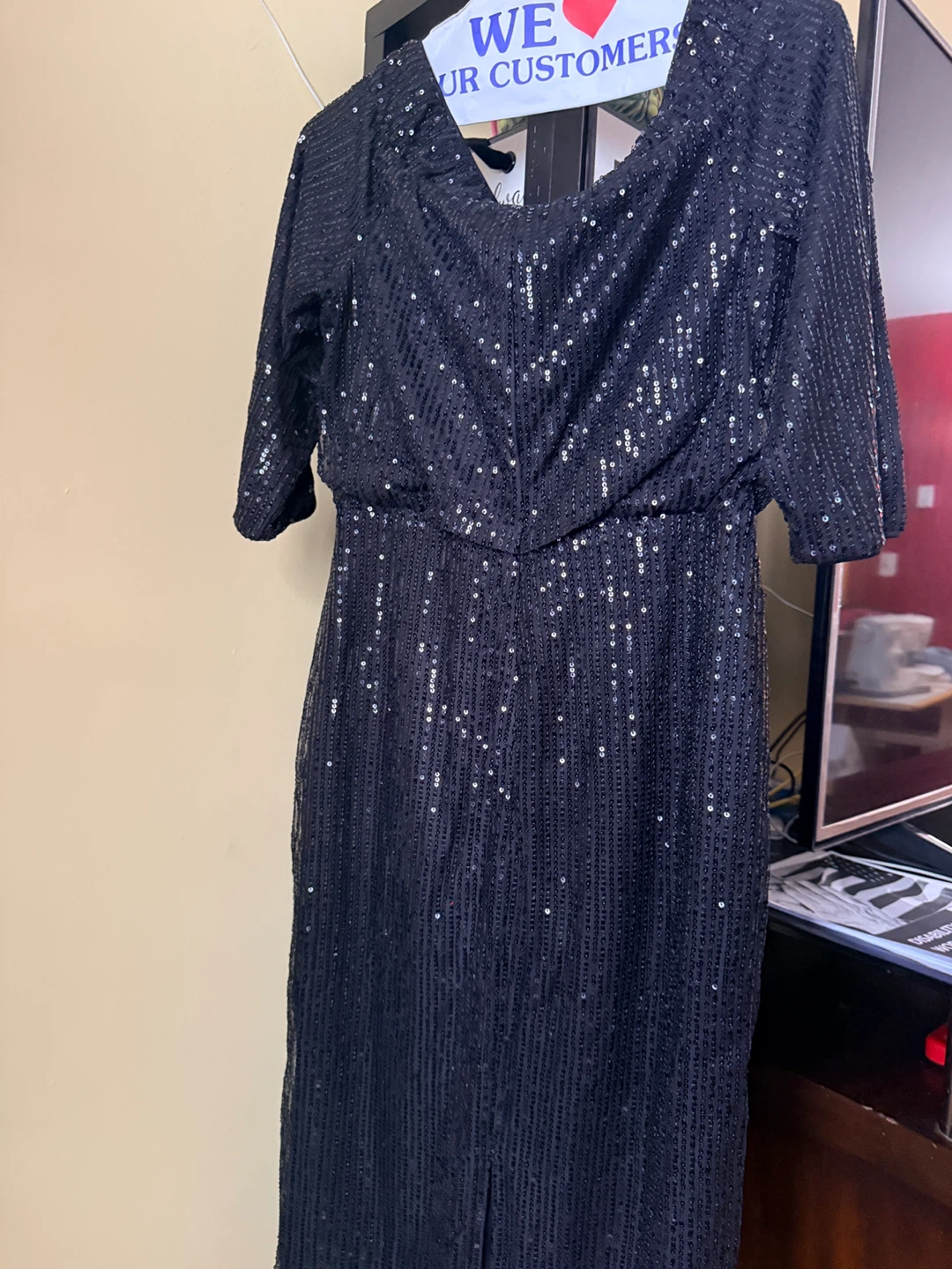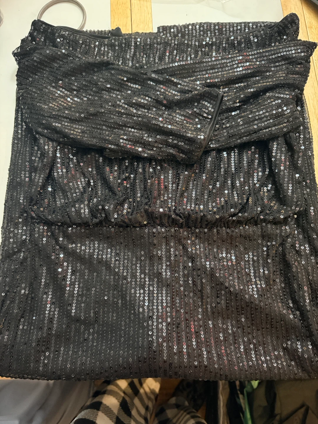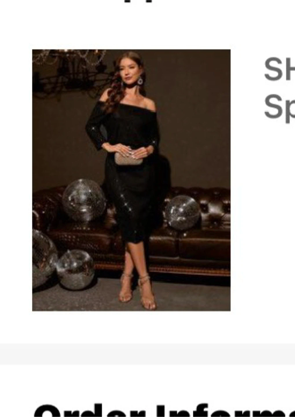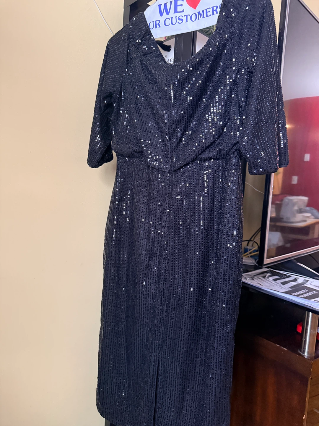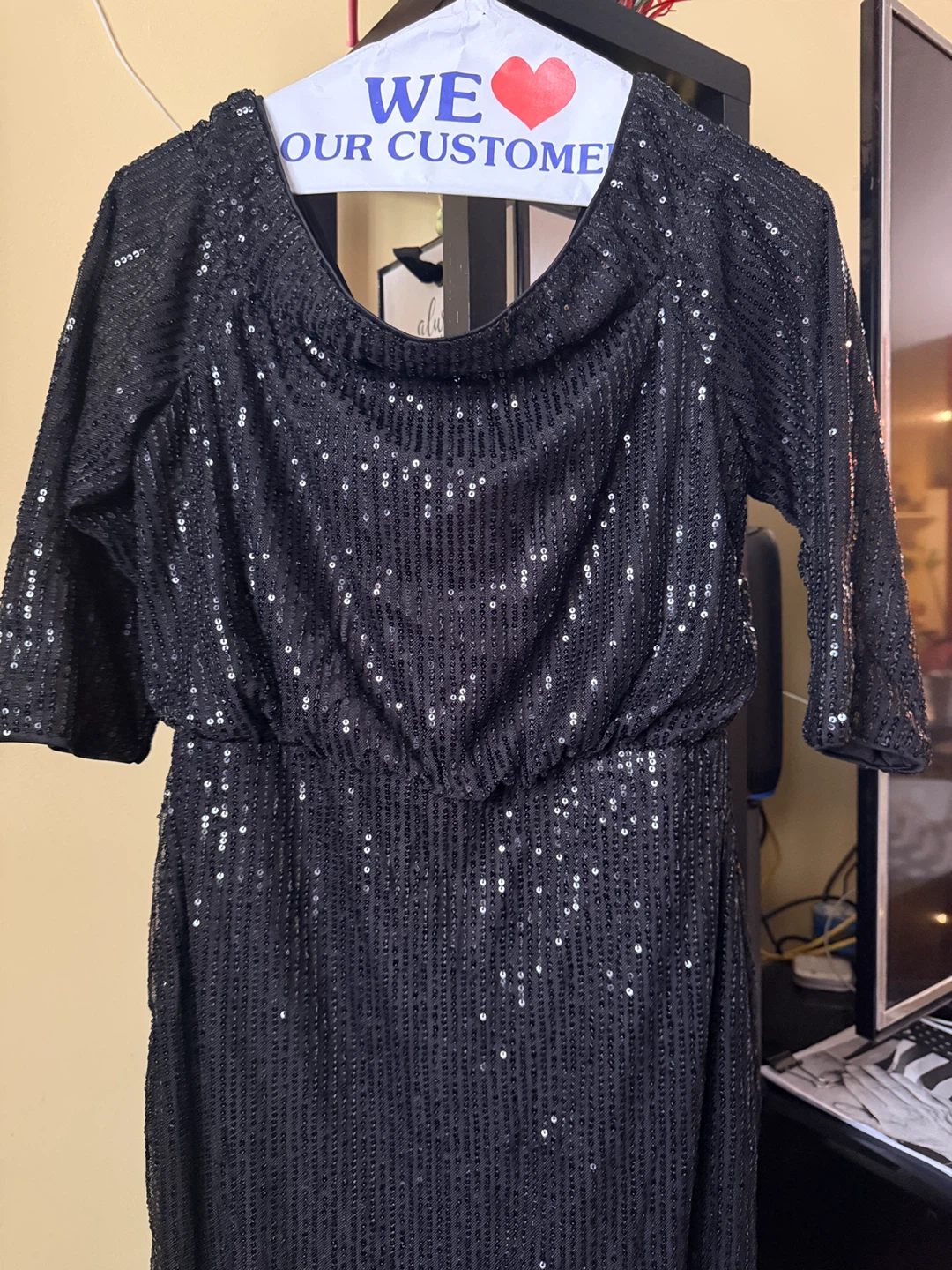Selling a beautiful black sequin dress from Shein! It's a size M (US 6, EU 38). The dress is made of 95% polyester. Perfect for a night out or a special occasion!
