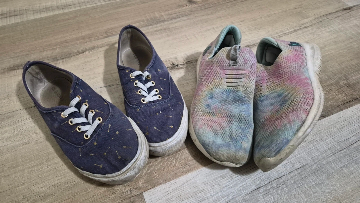2 pairs of shoes that fit girls size 4, Sketchers & Old Navy.