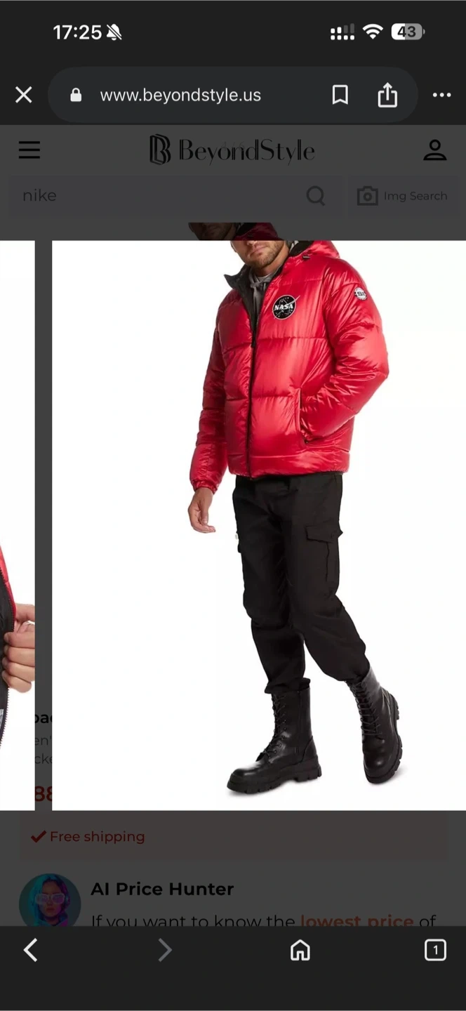This red puffer jacket features a shiny exterior with a NASA logo on the chest and back. It's reversible, with the inside lining showcasing a cool astronaut and space print! Puffer style for warmth and comfort.