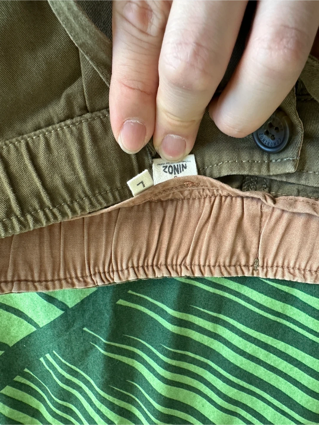 Selling a pair of Zonin pants in olive green. They're a size L and in great condition. Perfect for a casual, comfortable look!