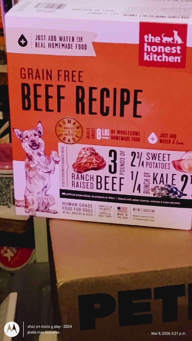 Selling a new bag of The Honest Kitchen Whole Food Clusters grain-free dog food, beef recipe. It's made with high-quality, human-grade ingredients, including real meat, fruits, and vegetables. If the ad is up, it's available. Cash accepted.