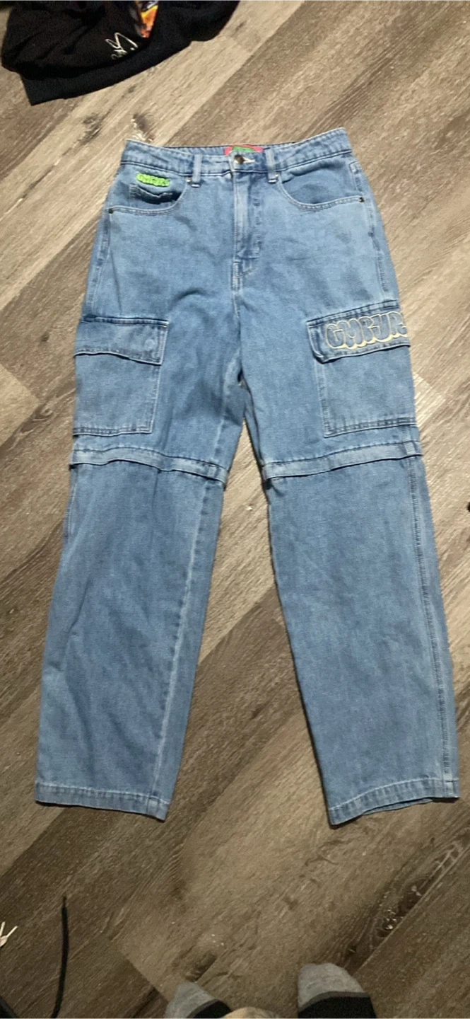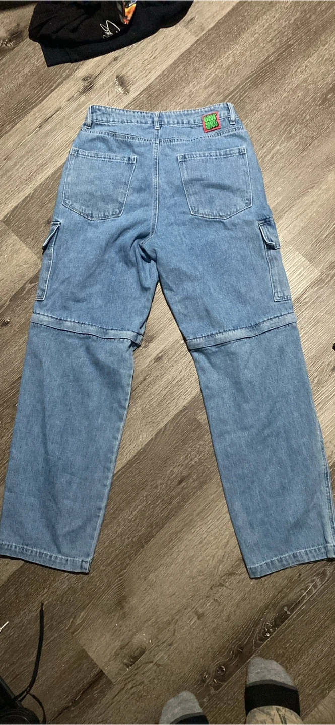 Selling a pair of Empyre convertible cargo jeans in size 4! These jeans are a light wash denim and have a unique convertible feature, allowing you to change up your style. They are in great condition and ready for a new home!