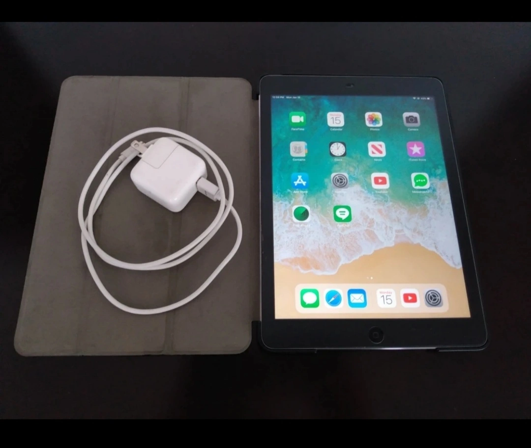 Great condition, ipad Air comes with case like new and charger. Great deal!!!