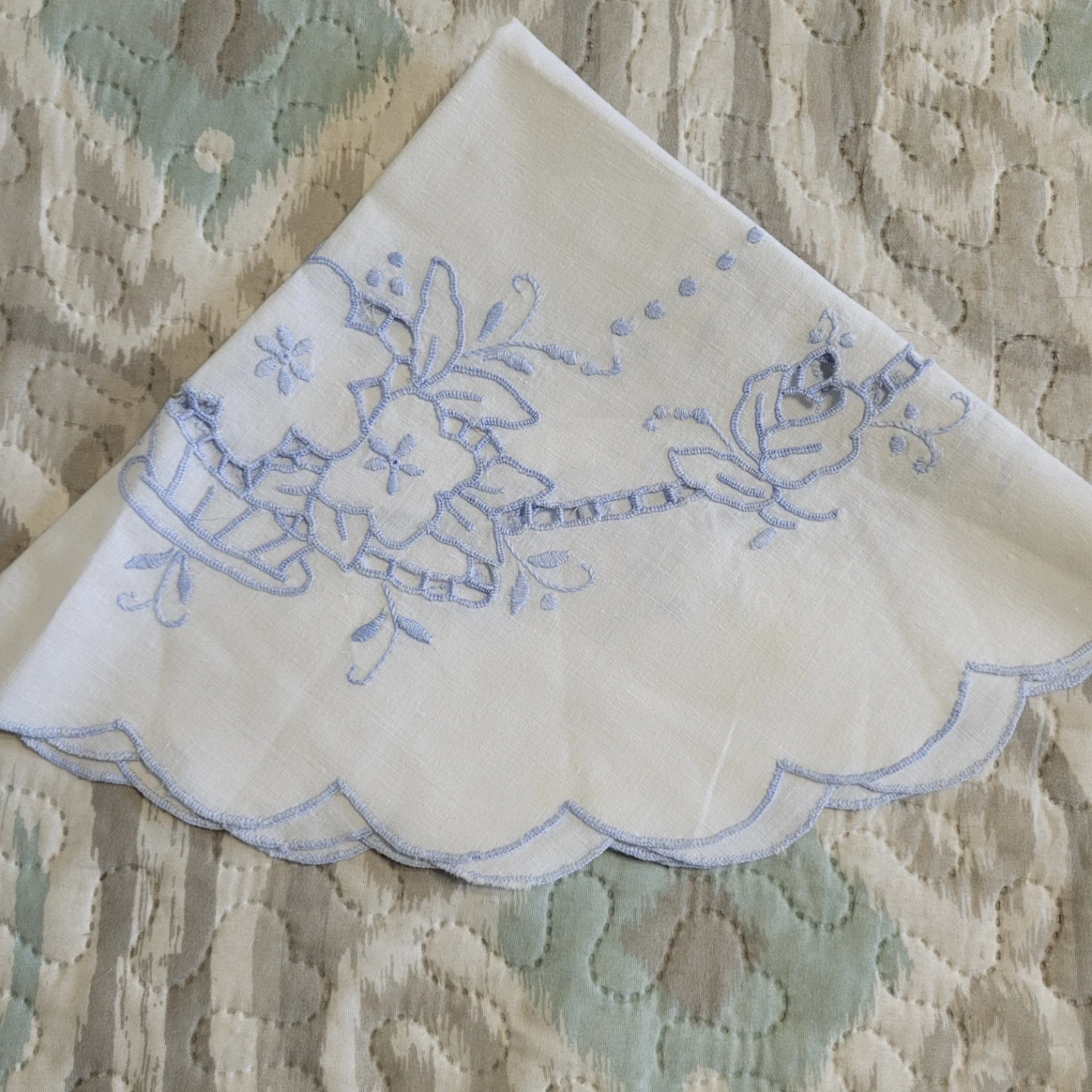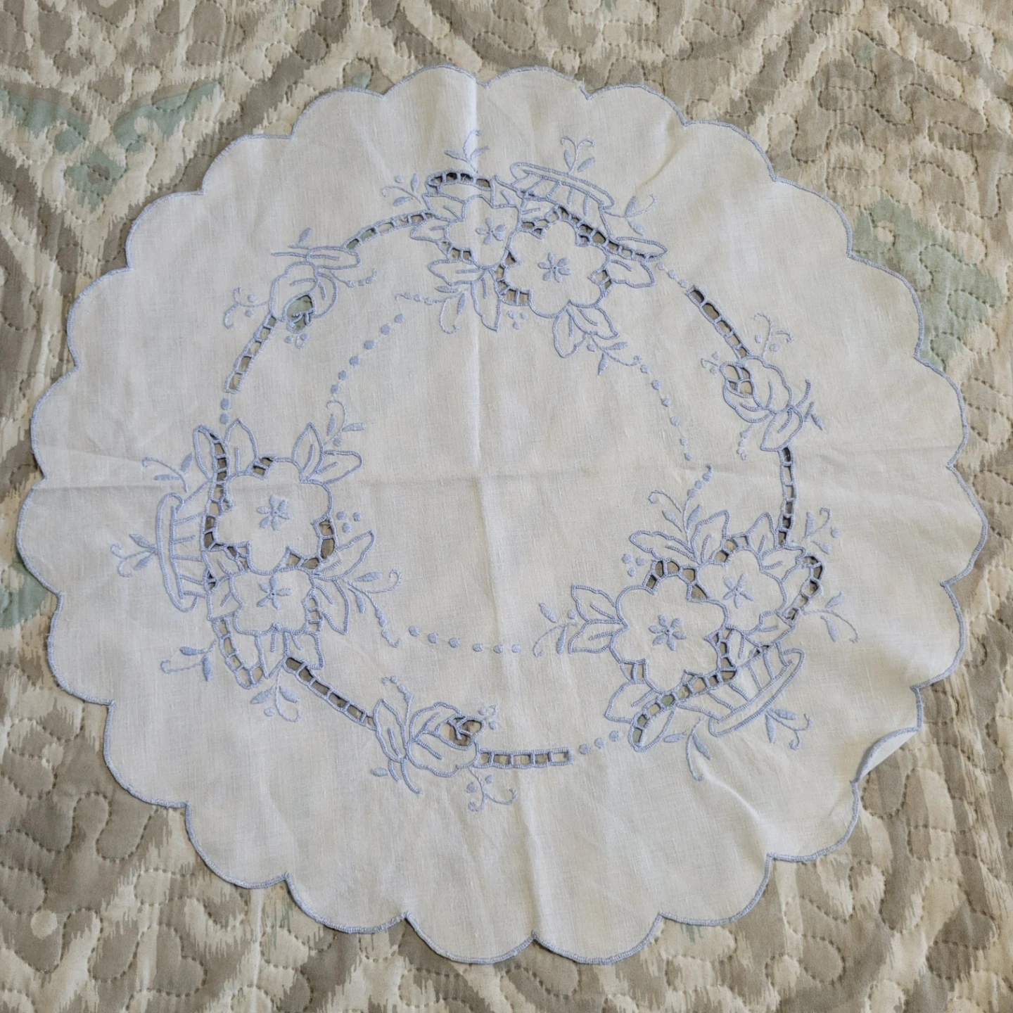 Beautiful Vintage 20" Handmade Table Linen with Embroidery