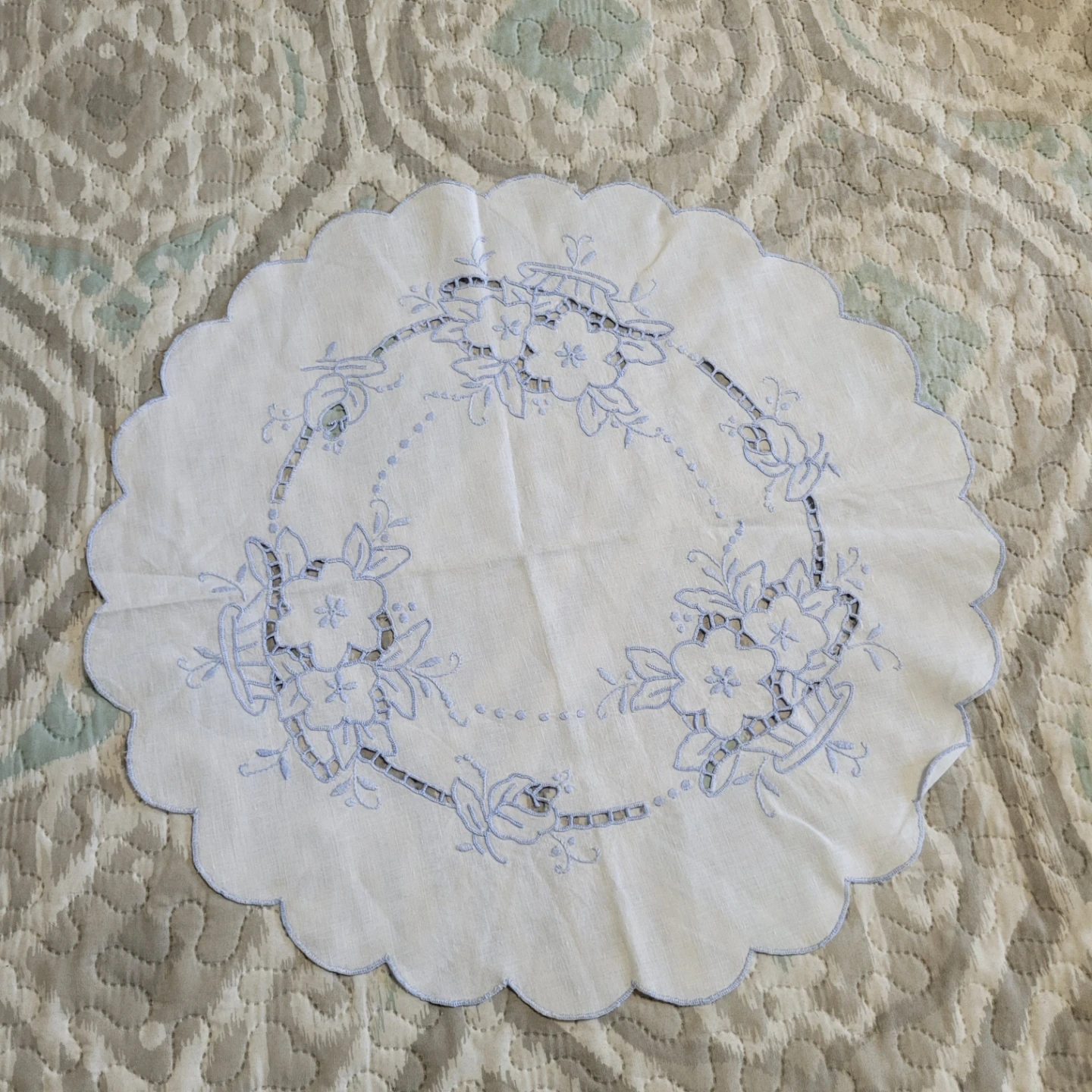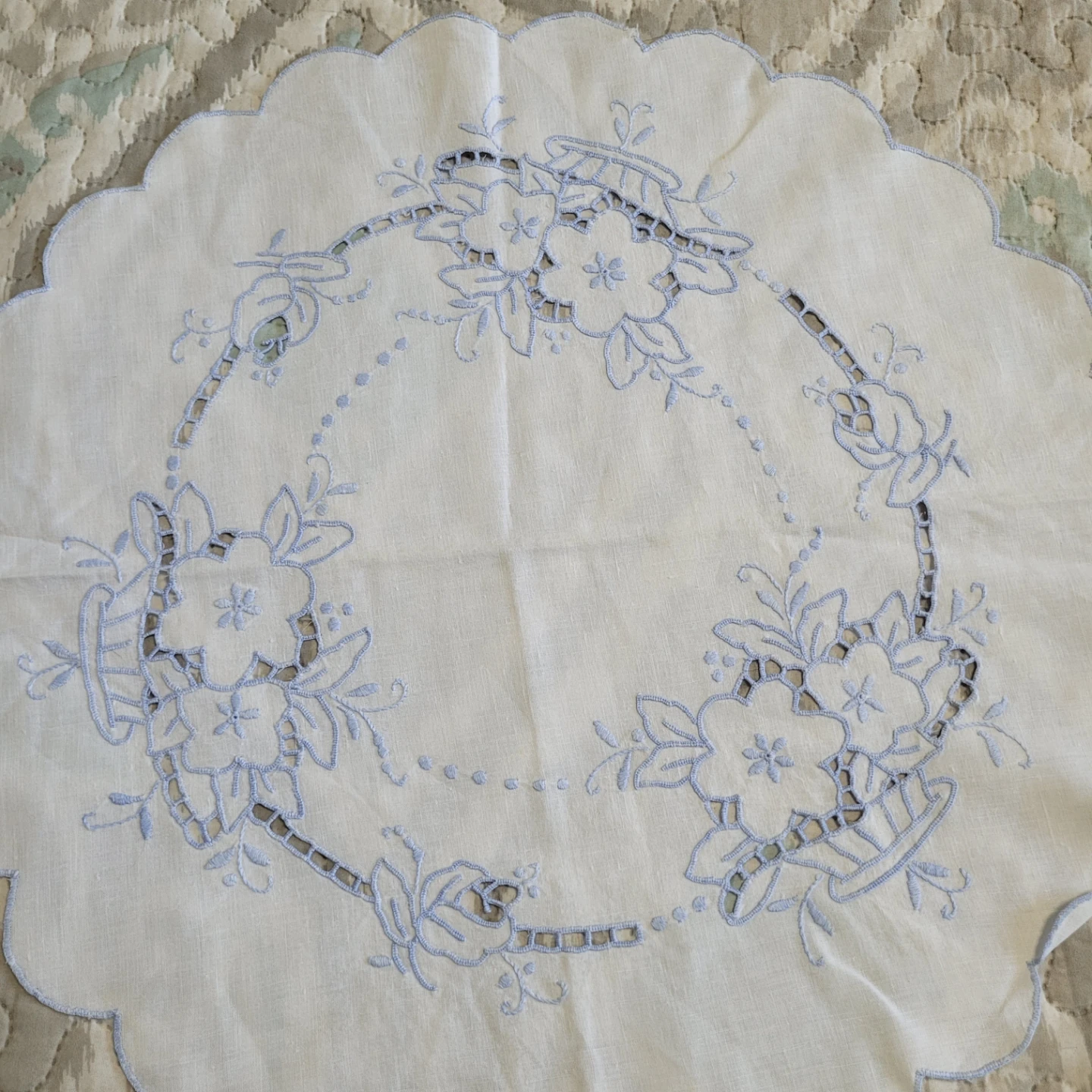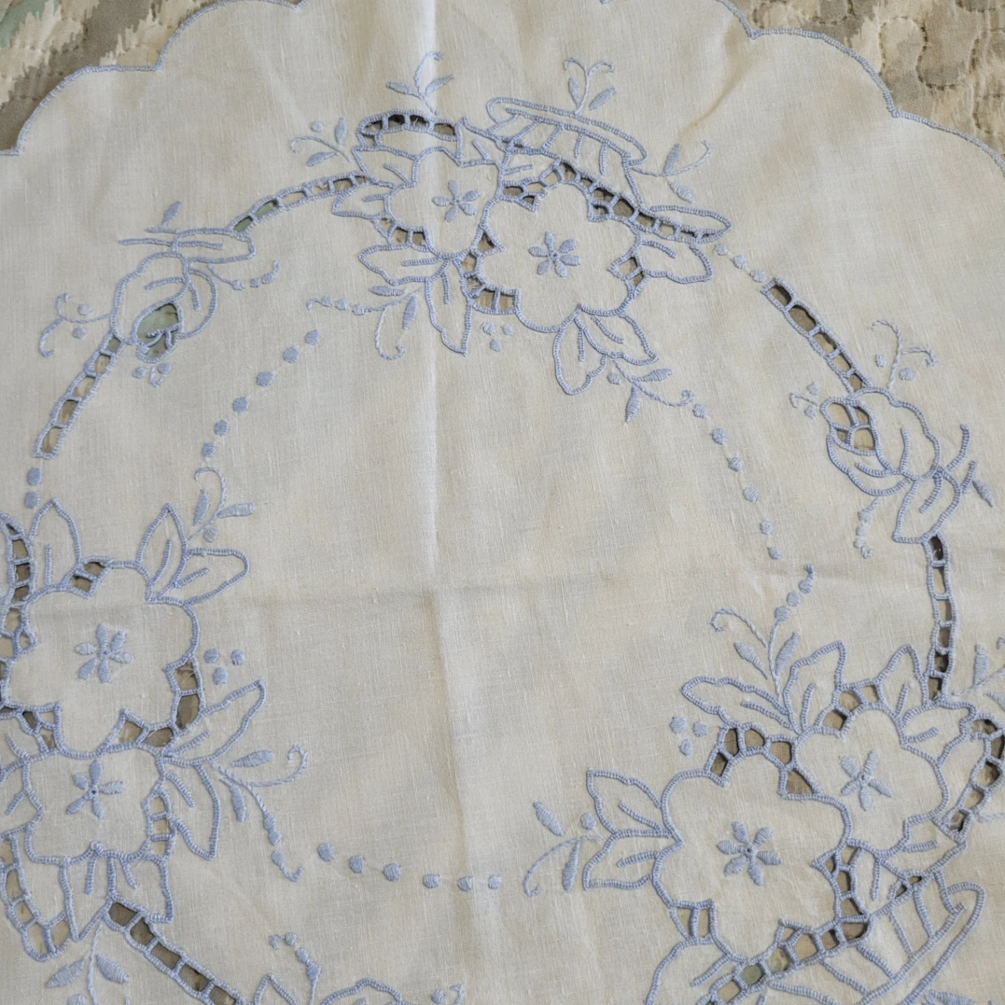 Beautiful Vintage 20" Handmade Table Linen with Embroidery