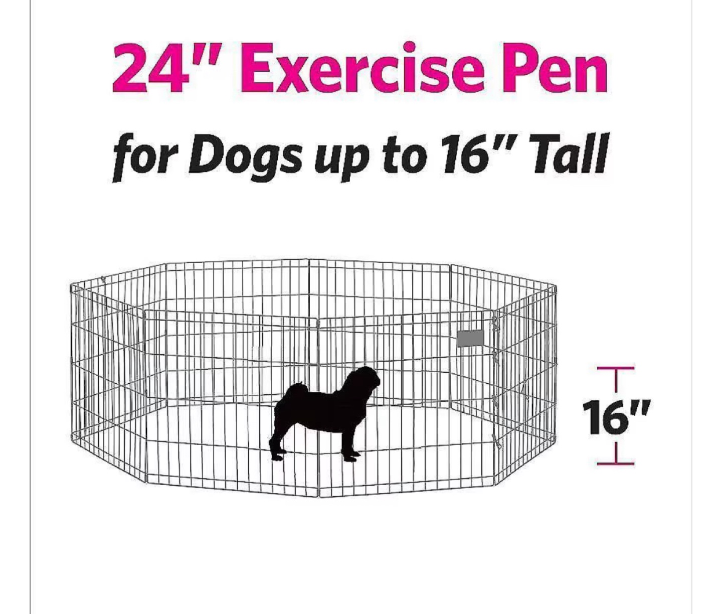 Selling a 24" exercise pen perfect for dogs up to 16" tall! It's in great condition and ready to use. Give your furry friend a safe and secure space to play and exercise
