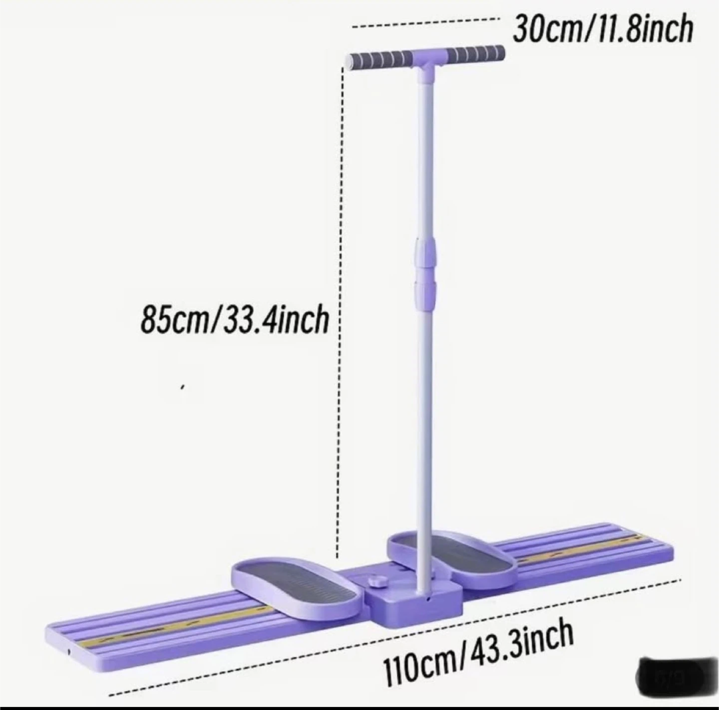 This ski stepper exercise machine is designed for a great workout. It features a "New Style" model with adjustable height. The machine measures 110cm/43.3 inches long and 85cm/33.4 inches high, with a handle width of 30cm/11.8 inches. It's ideal for home fitness routines.