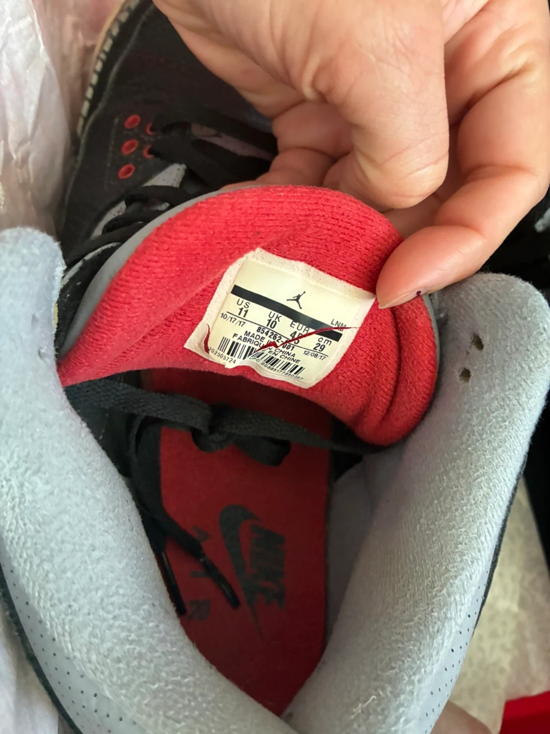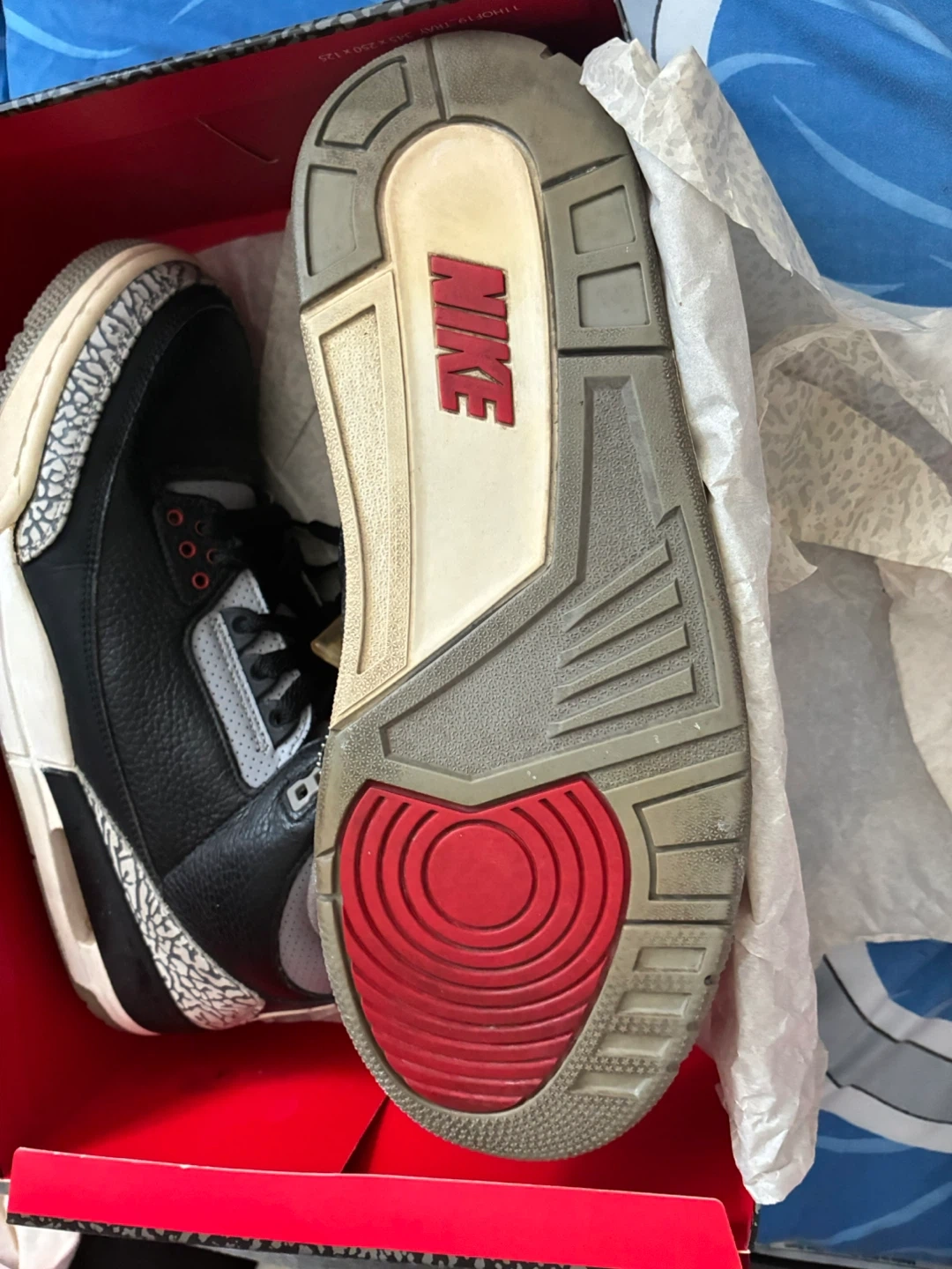 Selling a pair of Nike Air Jordan 3 Retro sneakers in size 11. They show some signs of wear, as you can see in the photos. Still in good condition and ready for a new owner!