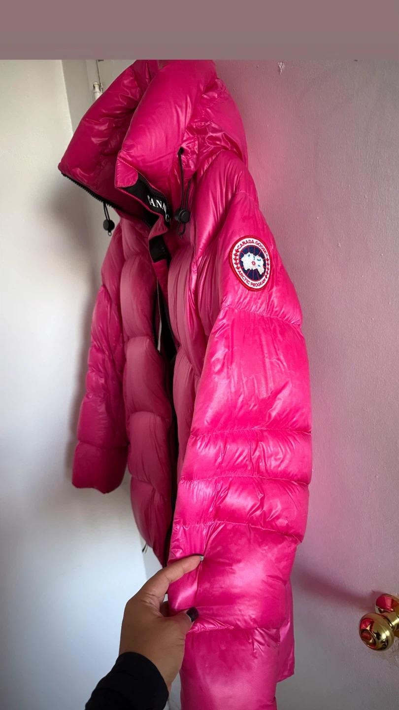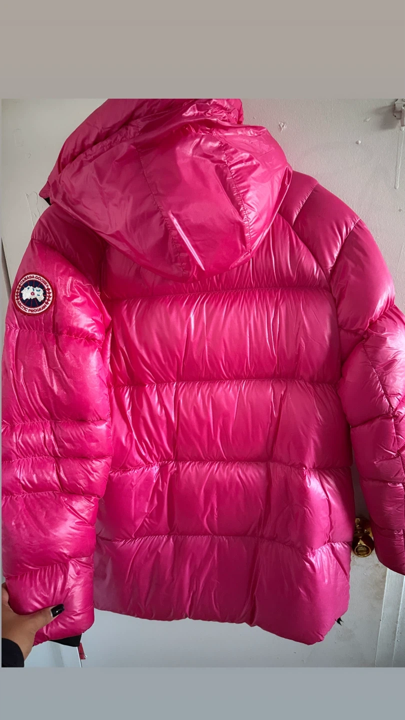 Selling a bright pink Canada Goose puffer jacket! It's a size large and in great condition. Perfect for staying warm and stylish this winter