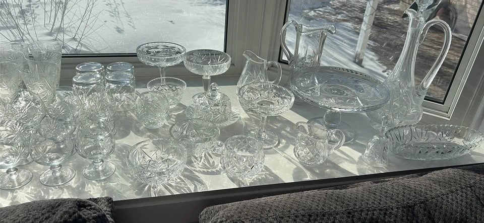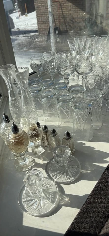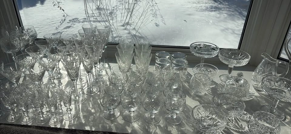 Impressive large crystal glassware set from an estate, featuring a wide variety of beautifully cut crystal pieces. This collection includes dozens of items, perfect for entertaining, display, or collectors. Includes a mix of: Wine glasses, champagne flutes, cordial glasses, Tumblers and goblets, Decanters and serving pieces, Various matching and complementary crystal patterns. All pieces are in very good condition, with no noticeable chips or cracks. Sparkles beautifully in natural light. Estate sale — priced to sell quickly. These pieces are worth significantly more, but pricing reflects the need for a timely sale. Ideal for: Collectors, Entertaining / hosting, Dining room or hutch display, Vintage crystal lovers.