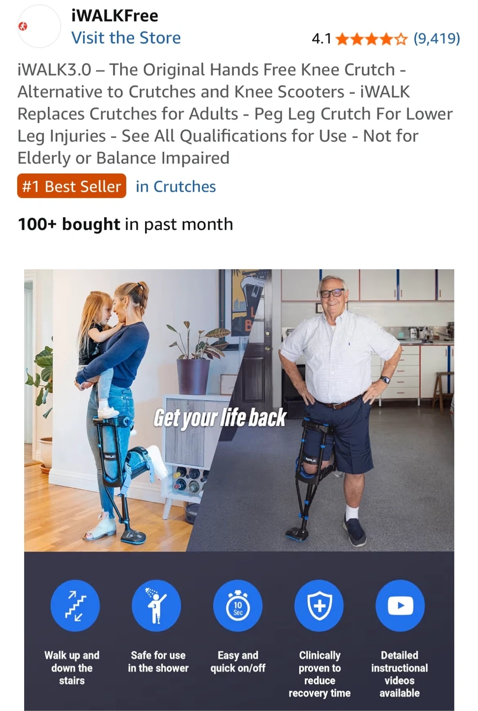 iWALK 3.0 Hands Free Knee Crutch