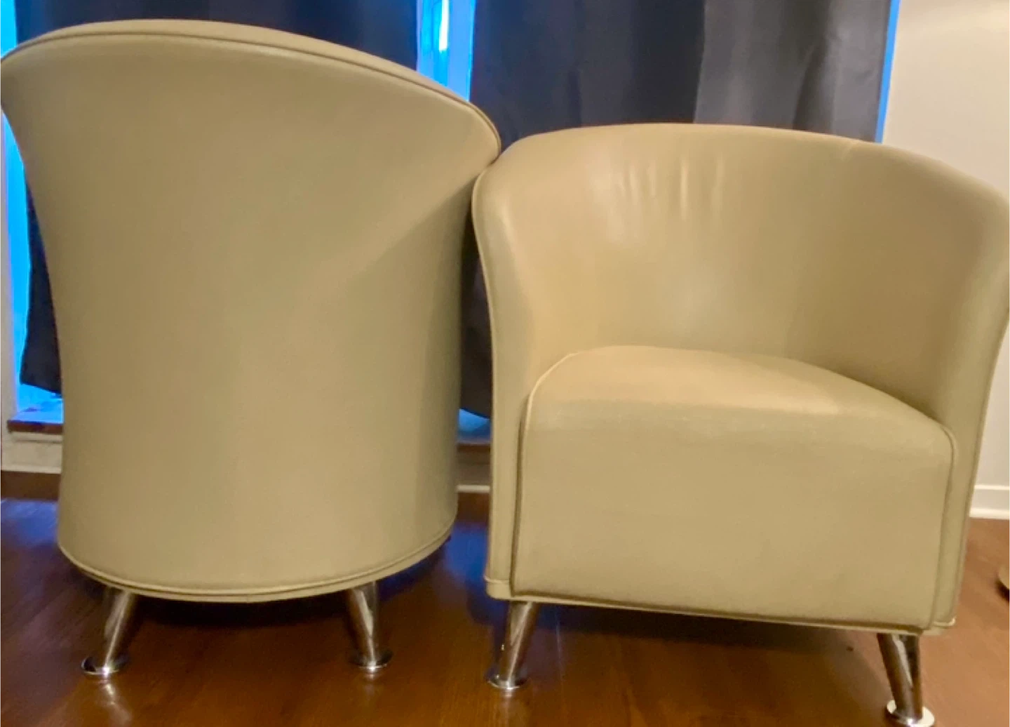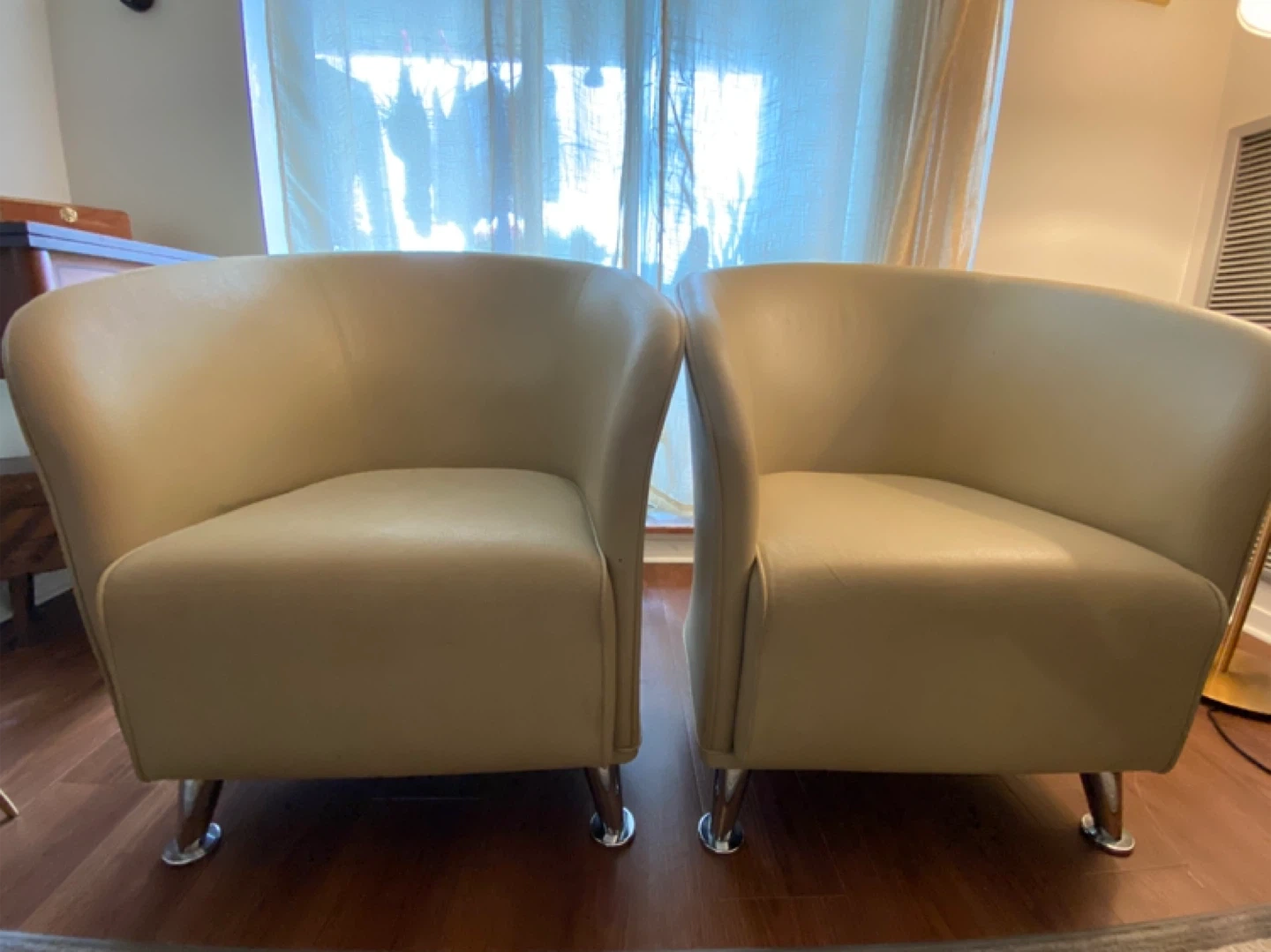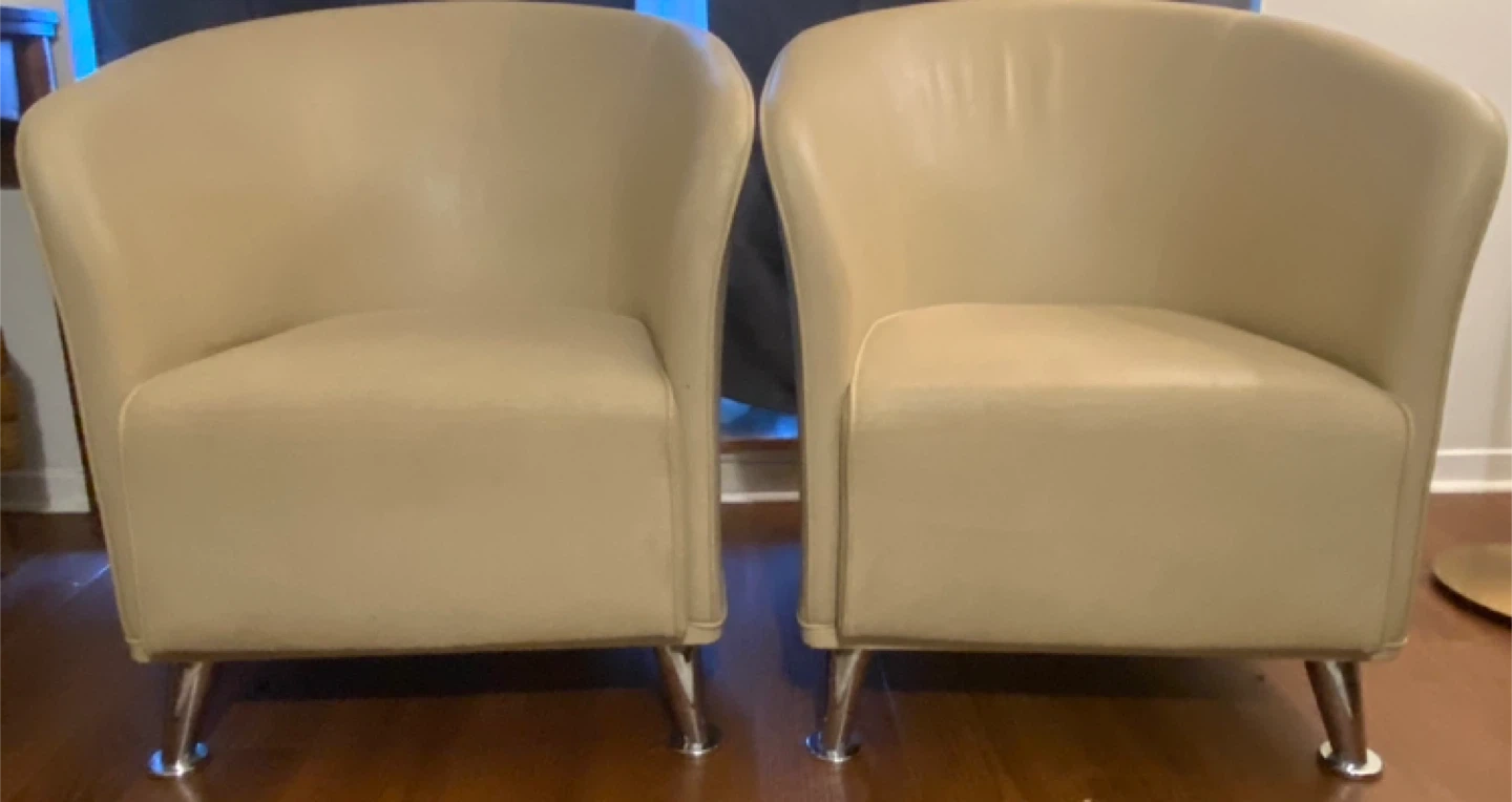 Pair of Leather Beige Accent Chairs