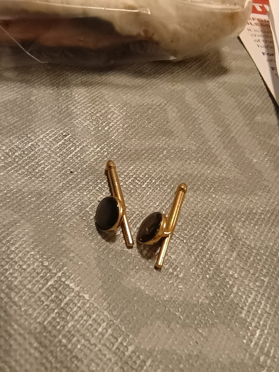 Gold Tone Cufflinks with Black Oval Stone