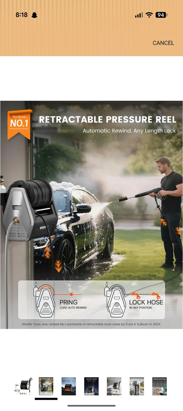 Giraffe Tools Retractable Pressure Washer Hose Reel