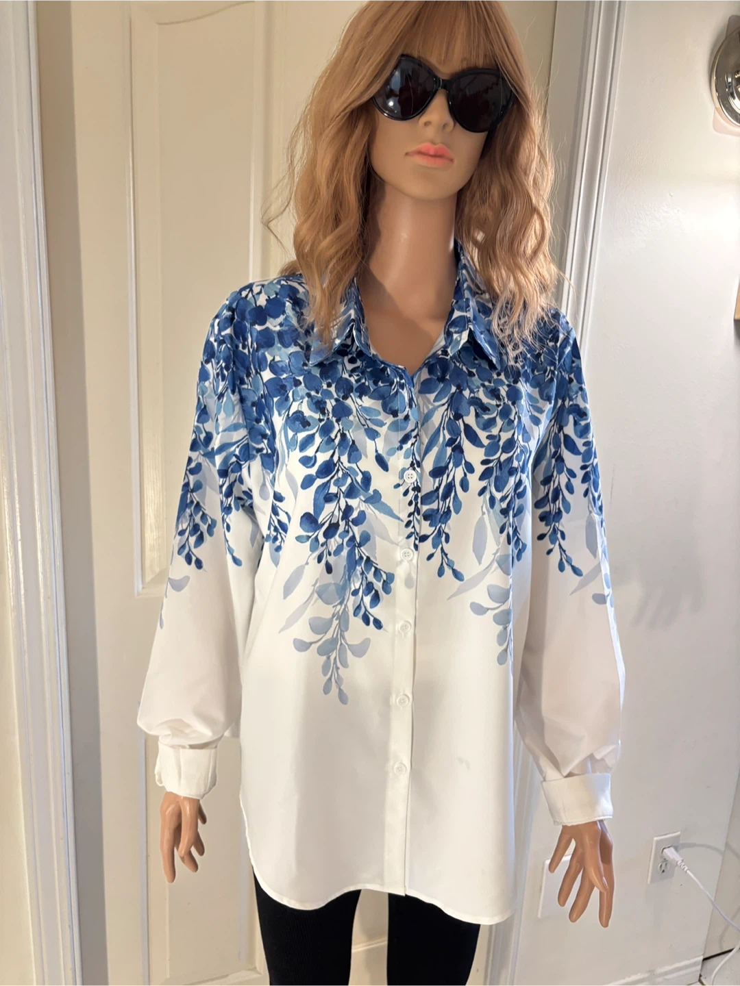 Women’s long sleeve top in a crisp, clean white & blue colour combination. Classic and versatile - perfect for work, casual outings, or layering under a blazer or cardigan. A timeless piece that looks put-together with minimal effort.