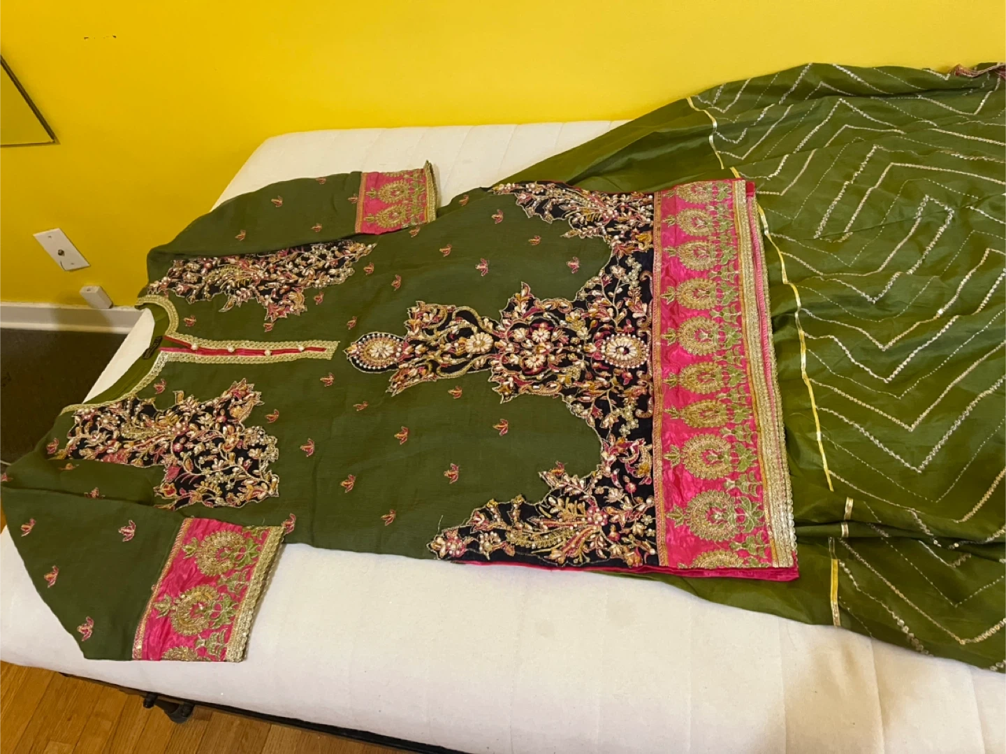 Green Embroidered 3-Piece Shalwar Kameez Set with Dupatta