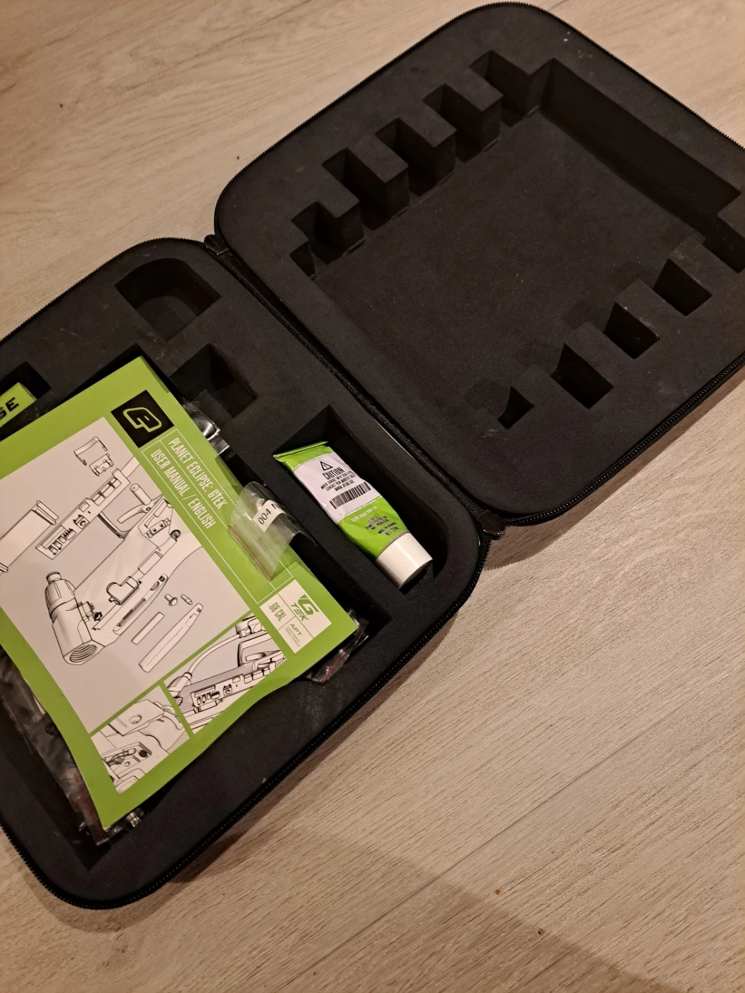 This is a protective case for a paintball marker, featuring the "Game On" slogan and the Planet Eclipse brand. It's designed to hold and protect your gear. Comes with a user manual and some accessories.