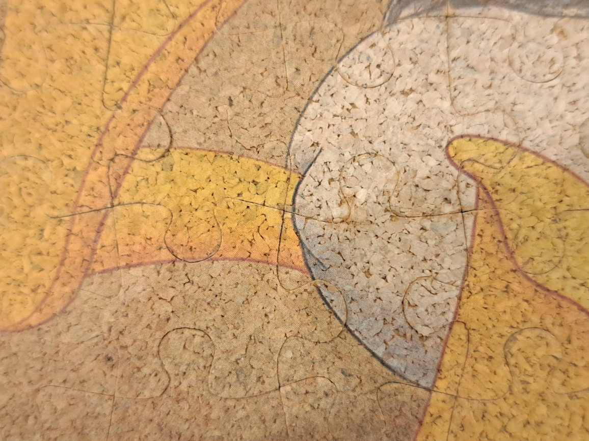 Framed cork puzzle featuring Mickey Mouse and friends travelling the world. Depicts various landmarks. Great for Disney fans or puzzle enthusiasts.