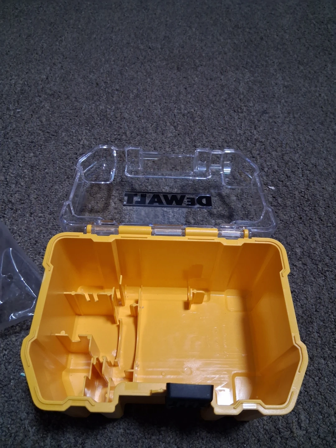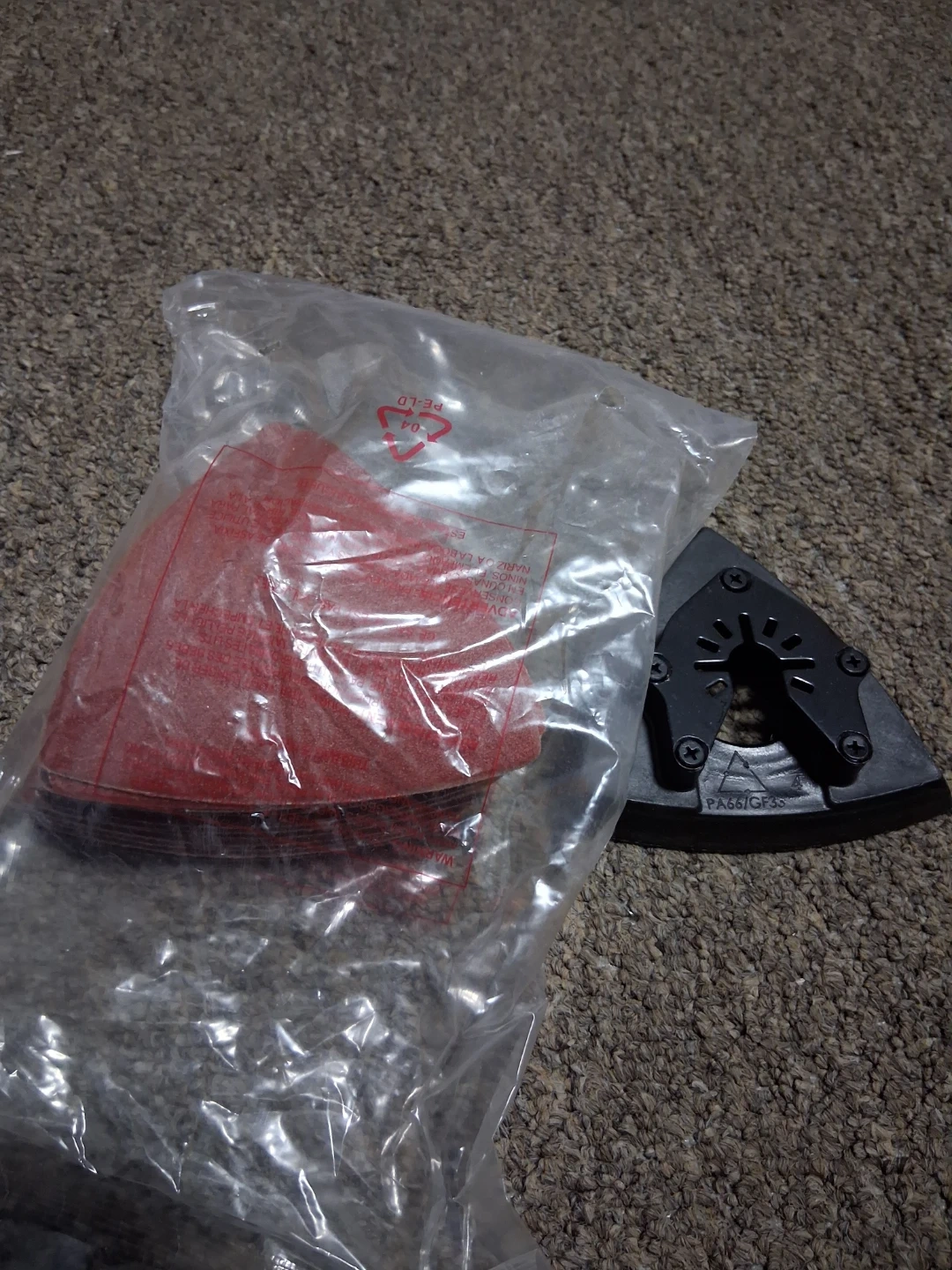 This bag DeWalt accessory kit includes various sanding pads 25 unit and abrasives. It comes with a storage case and a carrying bag for convenience. These accessories are useful for sanding and grinding tasks.