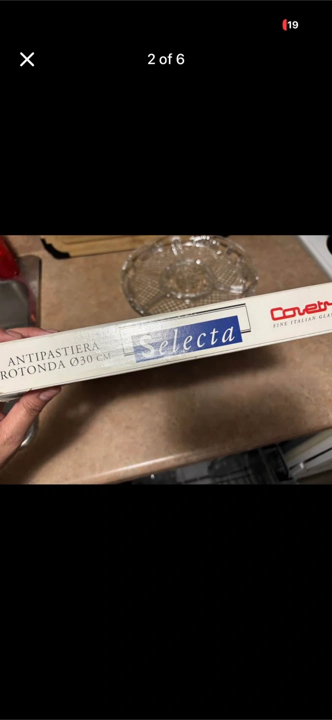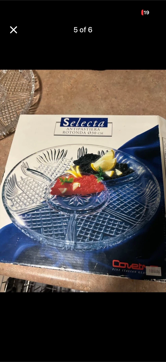 This Coventry Selecta serving dish is made of fine Italian glass. It's a round hors d'oeuvre platter measuring 30 cm in diameter. It has multiple compartments for serving snacks.