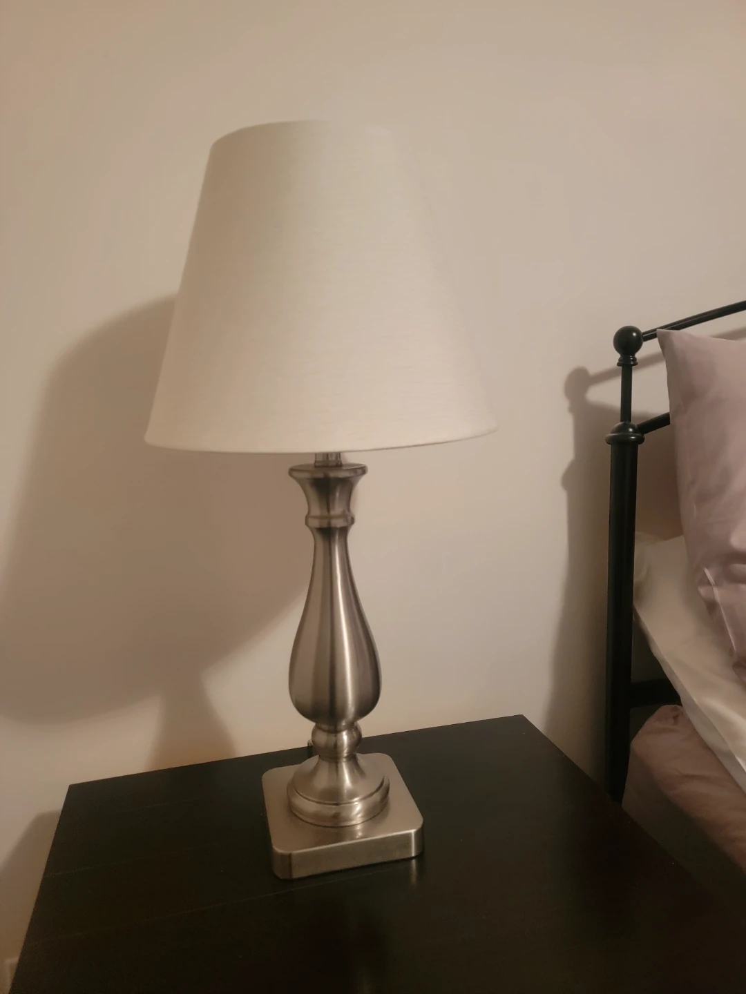 Selling a a pair of table lamps that would look great in any room! It features a silver base and a classic white shade. It's in great condition and ready to brighten up your space