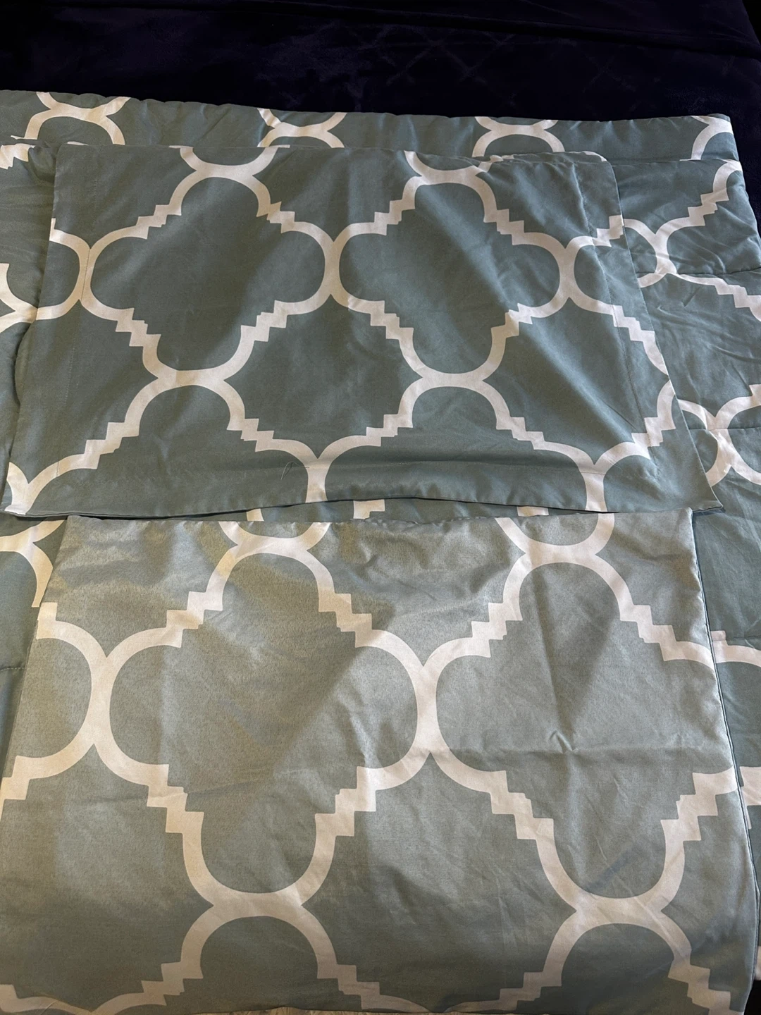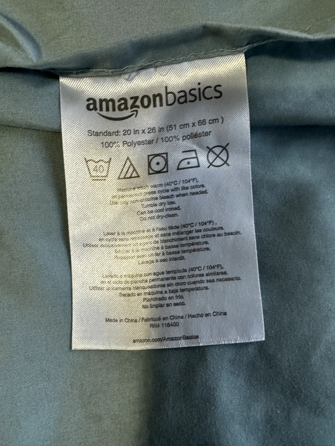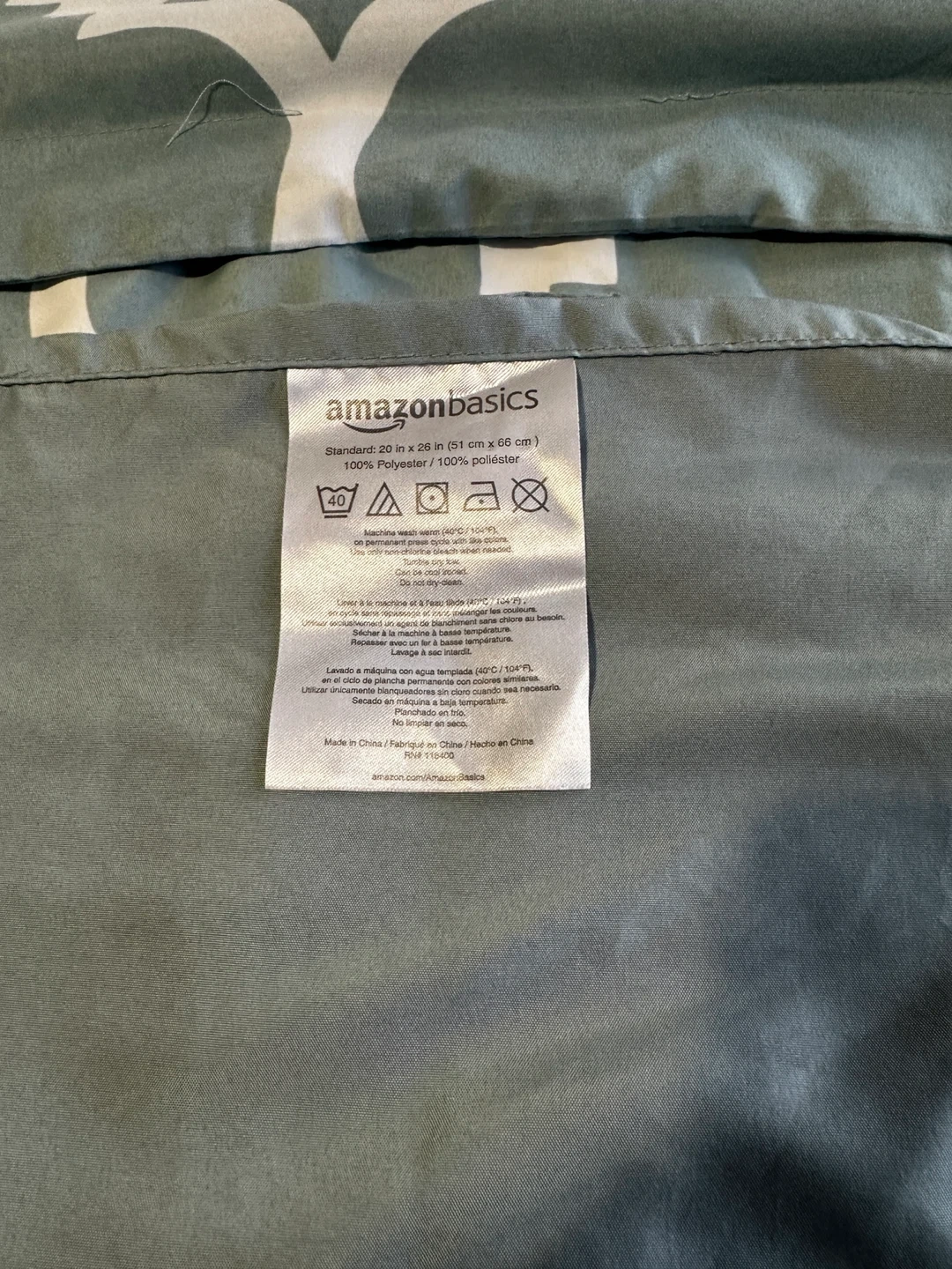 One standard pillowcase and one big pillow case with matching comforter from Amazon Basics. 100% polyester fabric for a soft feel. Machine washable for easy care.