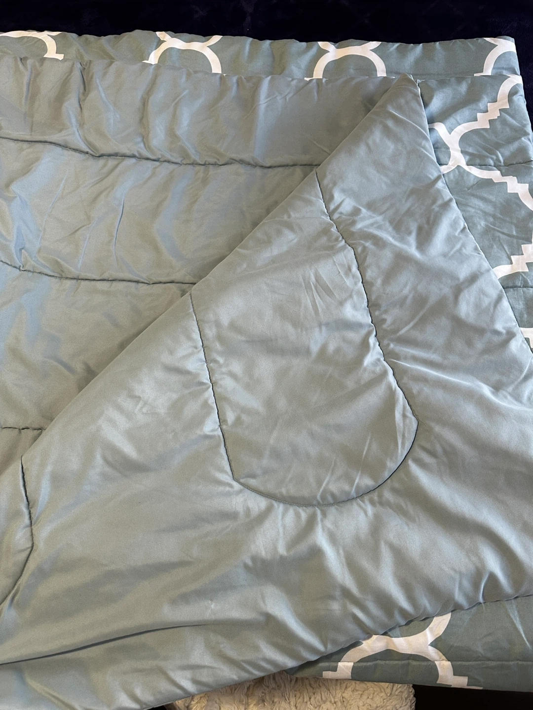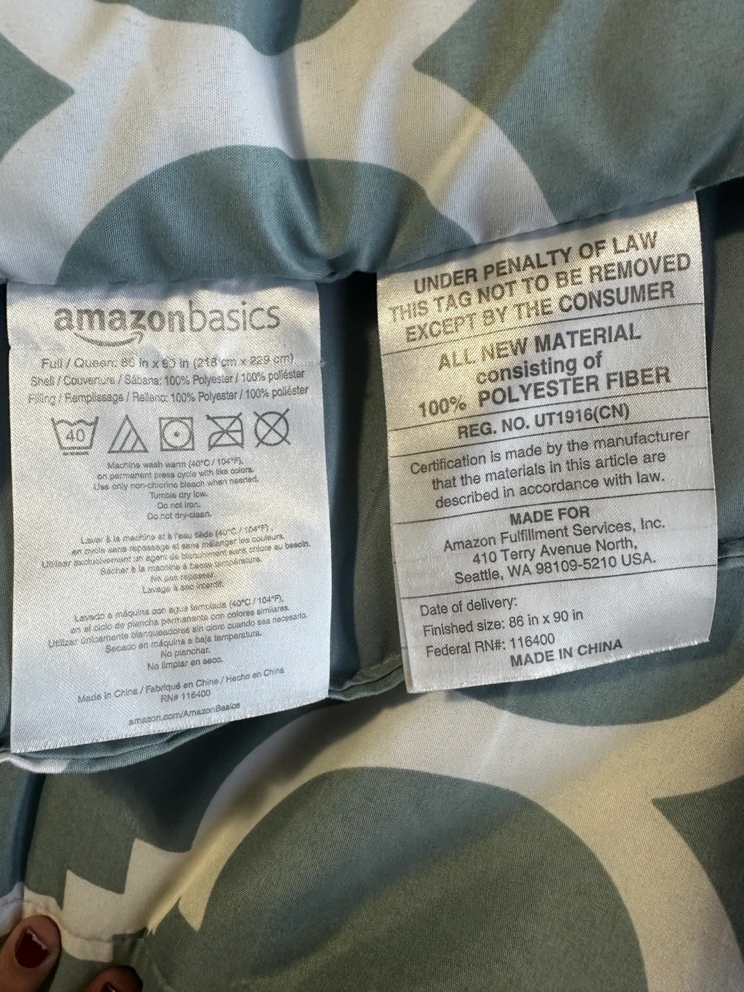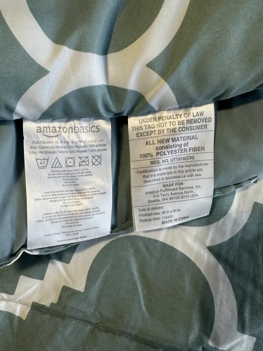 One standard pillowcase and one big pillow case with matching comforter from Amazon Basics. 100% polyester fabric for a soft feel. Machine washable for easy care.