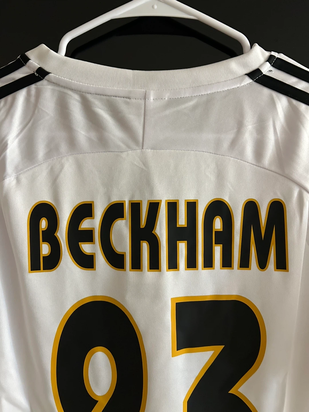Adidas Real Madrid jersey with Beckham #23 on the back. Features the Siemens mobile sponsor. Made with Aeroready material. This jersey is great for any football fan!