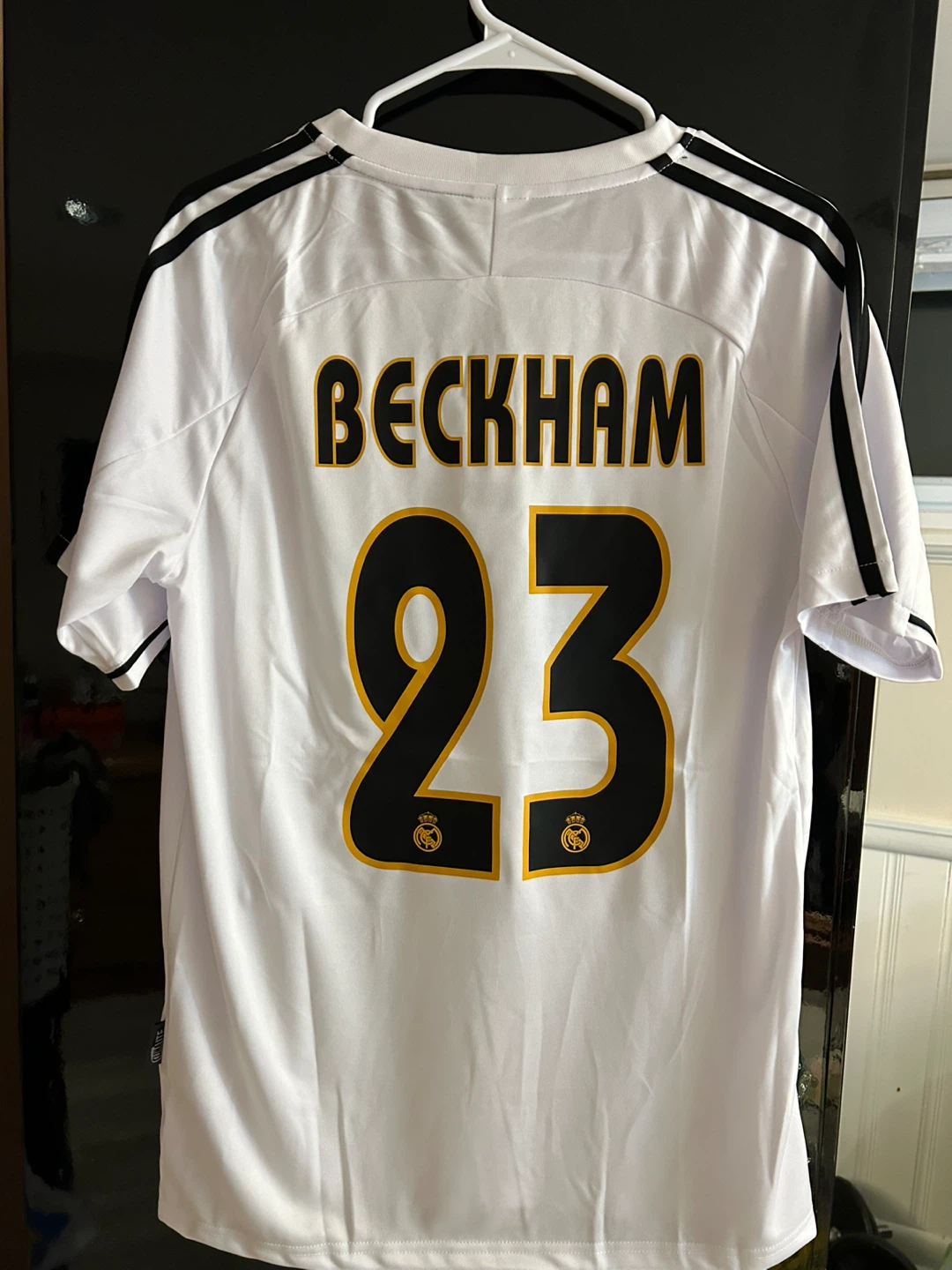 Adidas Real Madrid jersey with Beckham #23 on the back. Features the Siemens mobile sponsor. Made with Aeroready material. This jersey is great for any football fan!
