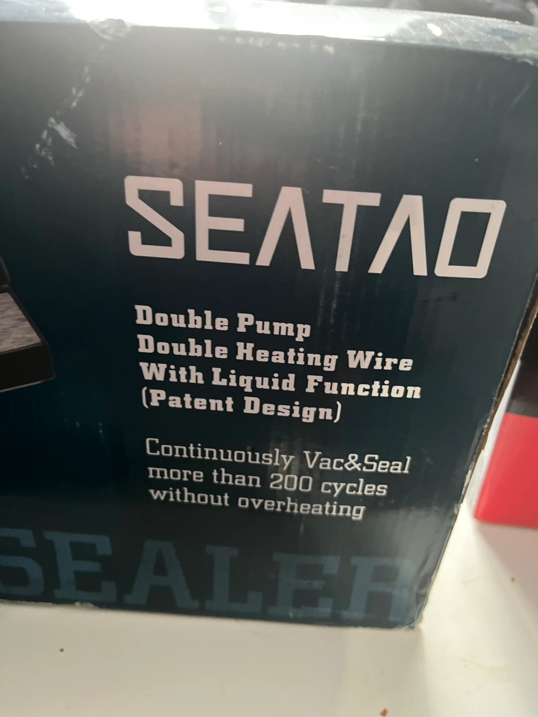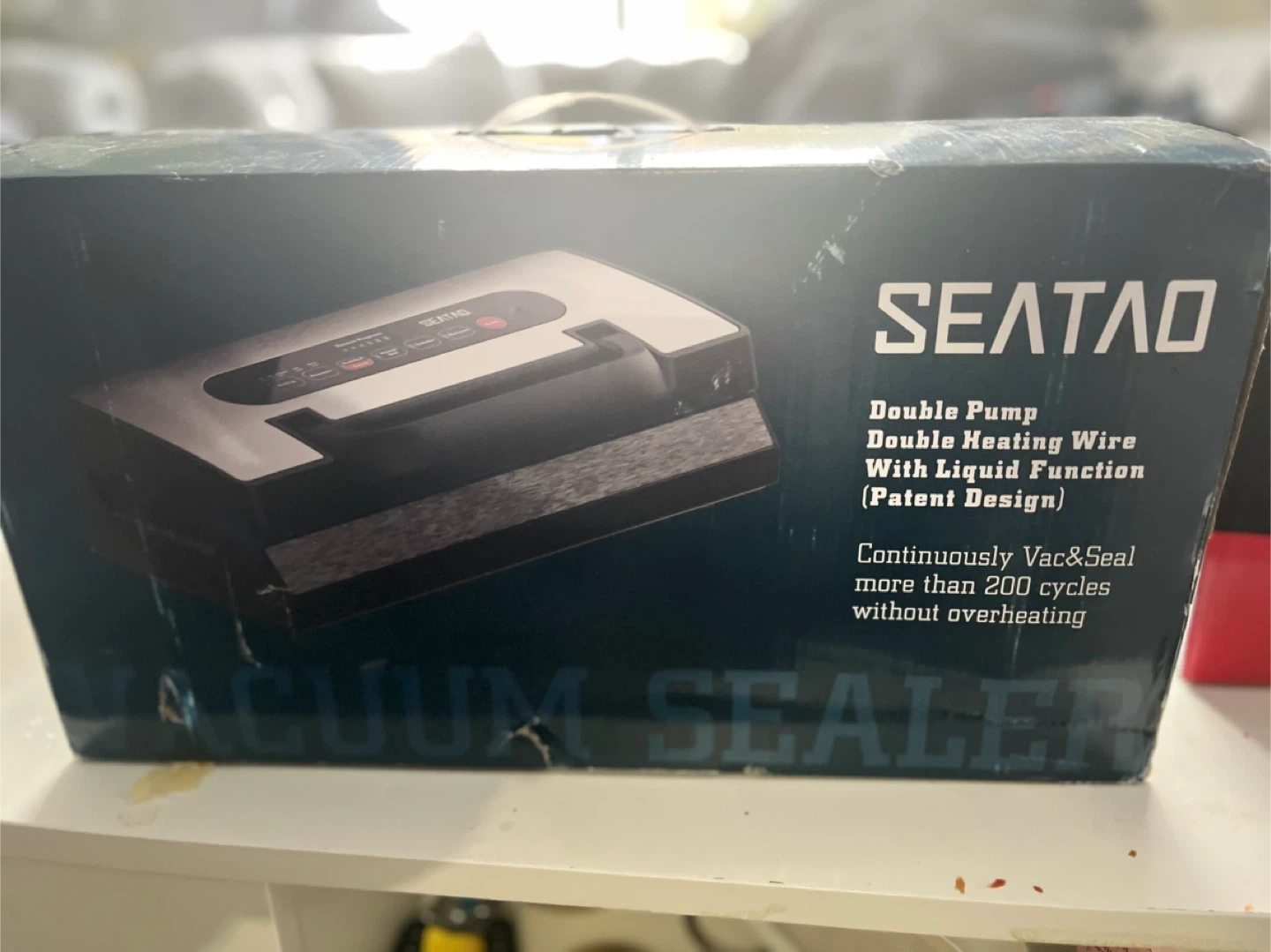 SEATAO vacuum sealer with double pump and double heating wire. It includes one roll 28cm x 6m bag roll, one roll 20cm x 6m bag roll, and one sealing gasket. It can continuously vac & seal more than 200 cycles without overheating. This machine is great for keeping food fresh and preventing freezer burn!