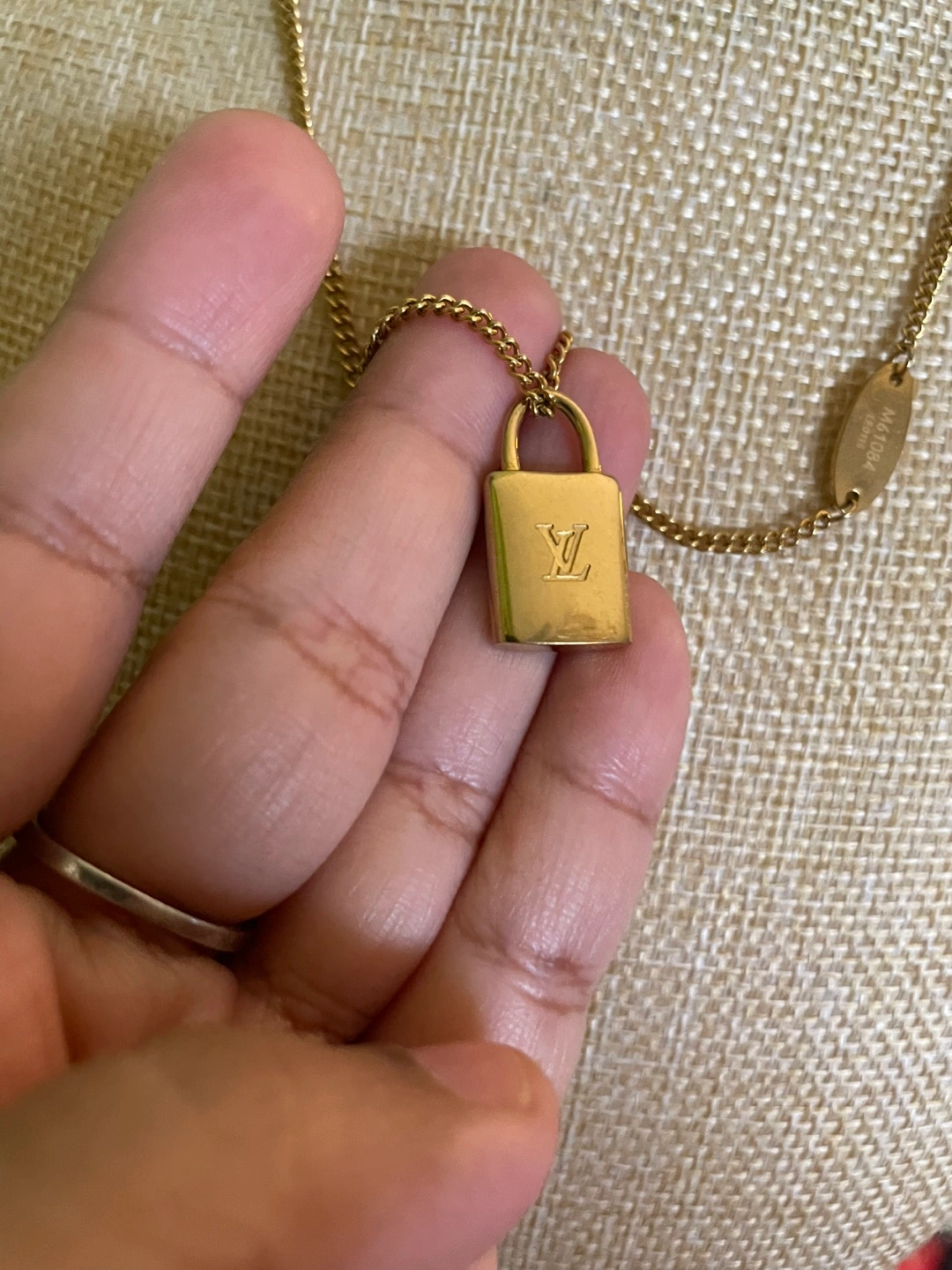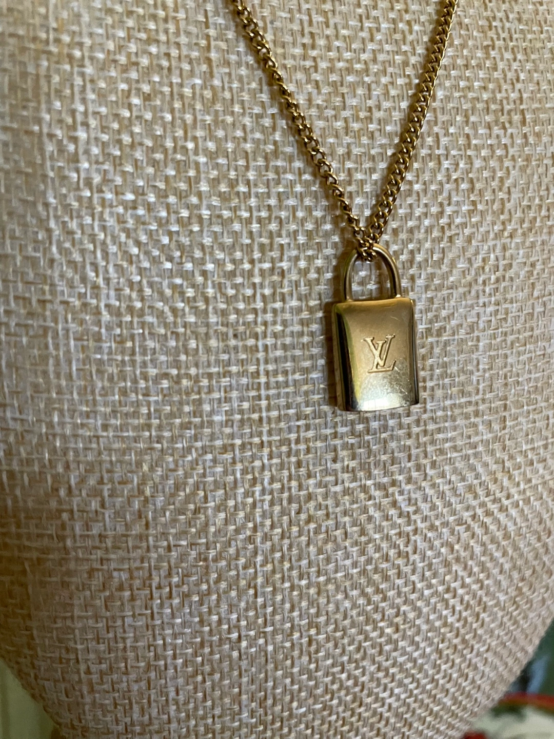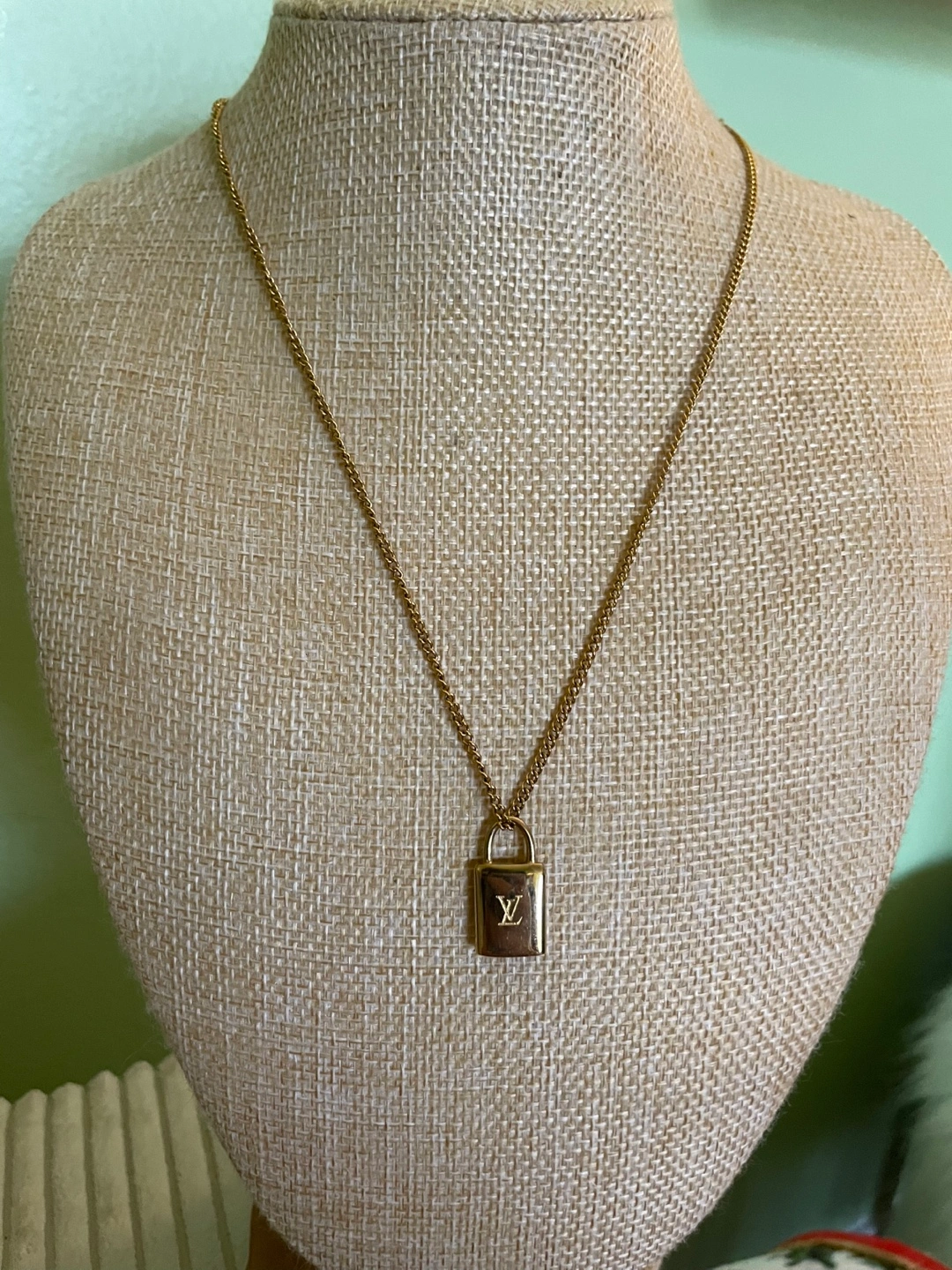 Louis Vuitton Gold Padlock Necklace with box and dust bag