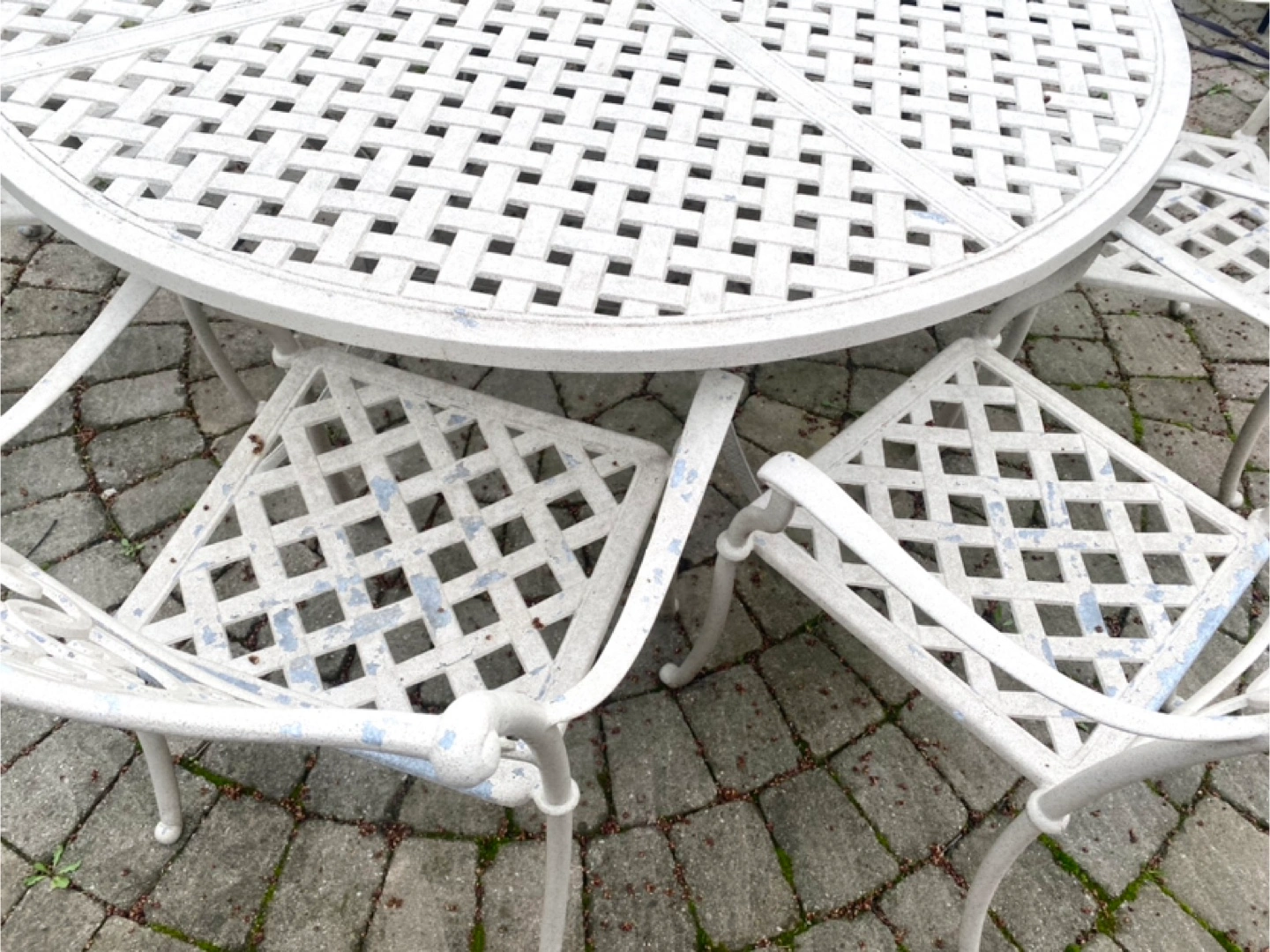 Aside from paint chips, it only requires a fresh coat of paint. You would need 2-3 people to lift the table.