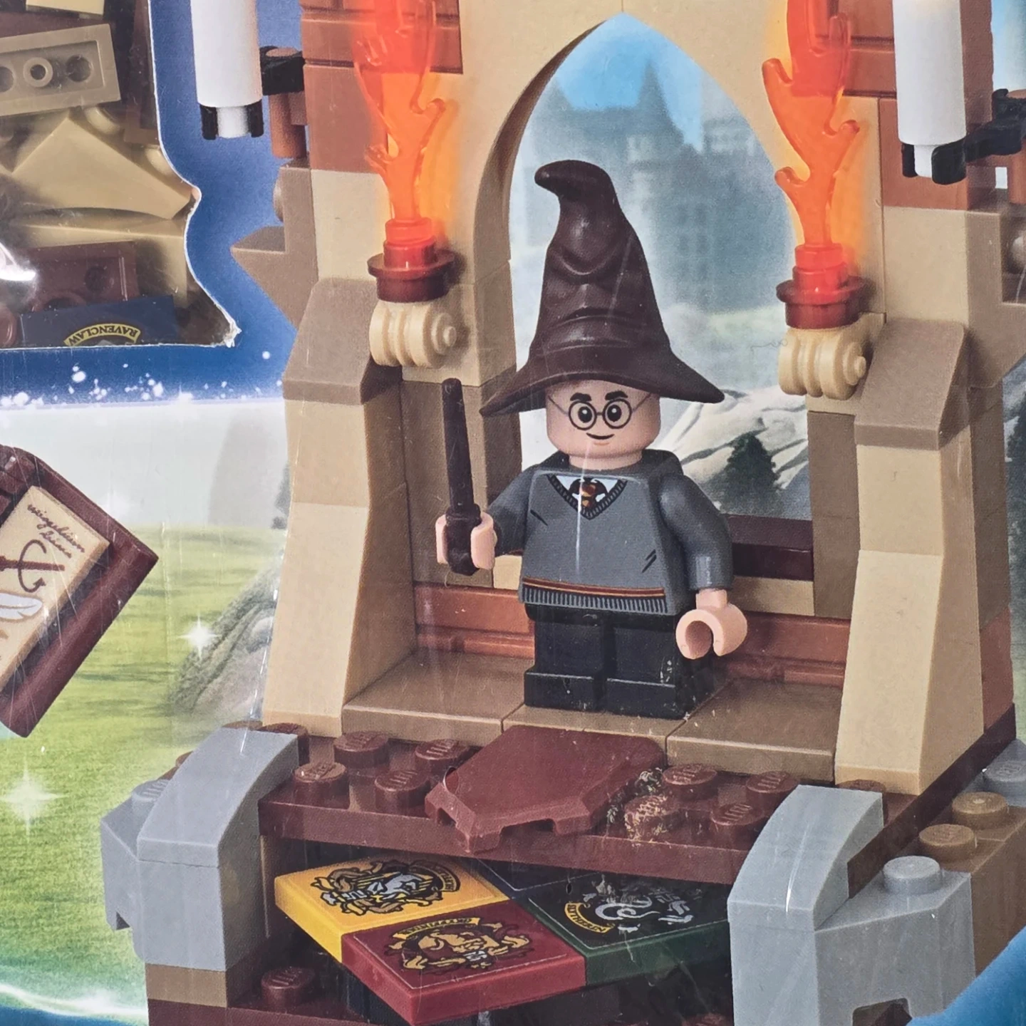 This LEGO Harry Potter 'Build Your Own Adventure' book comes with a Harry Potter minifigure and an exclusive 2-in-1 model. It includes 101 pieces for building a magical fireplace or a sorting hat spinner. Recommended for ages 6 and up.
